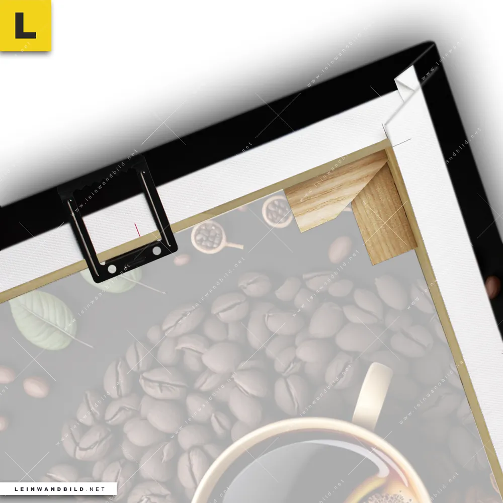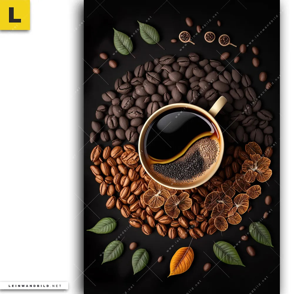 Du konfigurierst Dein individuelles Leinwandbild | Kaffee mit Blattdekoration | Hochformat und wir produzieren es NEU für Dich. Unsere Essen - Trinken Leinwände sind KEINE Lagerware. Du bist Dir unsicher, welches Motiv oder Format das richtige für dein individuelles Keilrahmenbild ist, dann helfen wir dir gerne weiter und beraten dich!