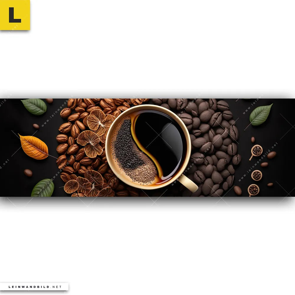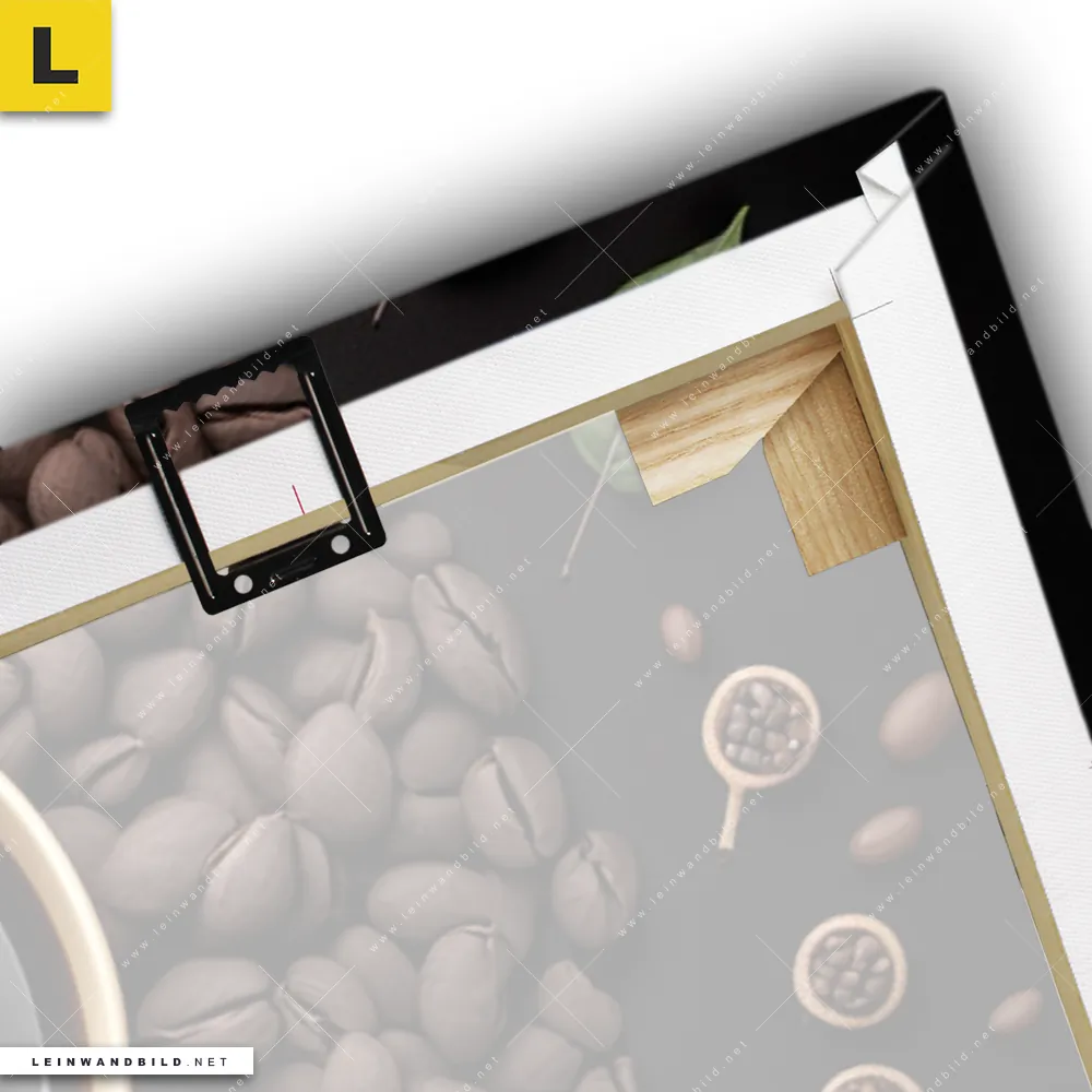 Du konfigurierst Dein individuelles Leinwandbild | Kaffee mit Blattdekoration | Panorama und wir produzieren es NEU für Dich. Unsere Essen - Trinken Leinwände sind KEINE Lagerware. Du bist Dir unsicher, welches Motiv oder Format das richtige für dein individuelles Keilrahmenbild ist, dann helfen wir dir gerne weiter und beraten dich!