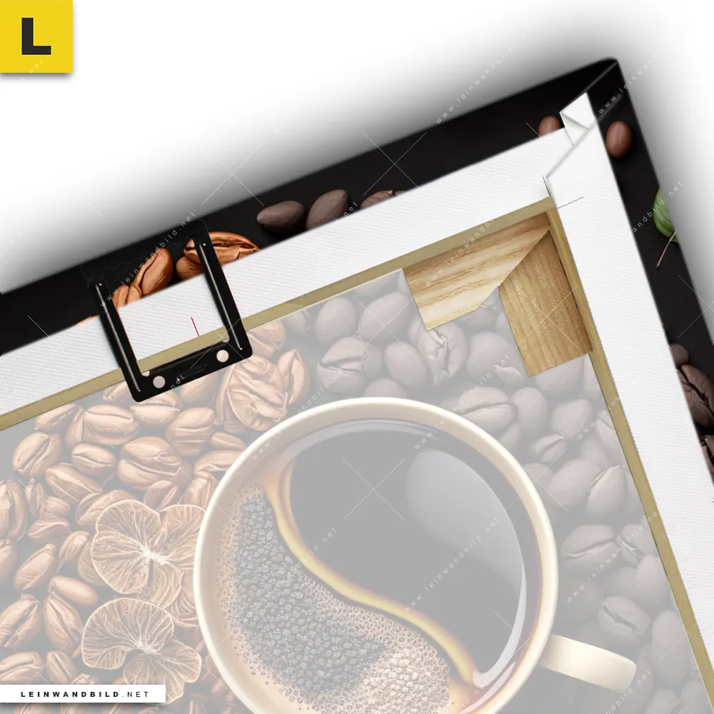 Du konfigurierst Dein individuelles Leinwandbild | Kaffee mit Blattdekoration | Quadrat und wir produzieren es NEU für Dich. Unsere Essen - Trinken Leinwände sind KEINE Lagerware. Du bist Dir unsicher, welches Motiv oder Format das richtige für dein individuelles Keilrahmenbild ist, dann helfen wir dir gerne weiter und beraten dich!