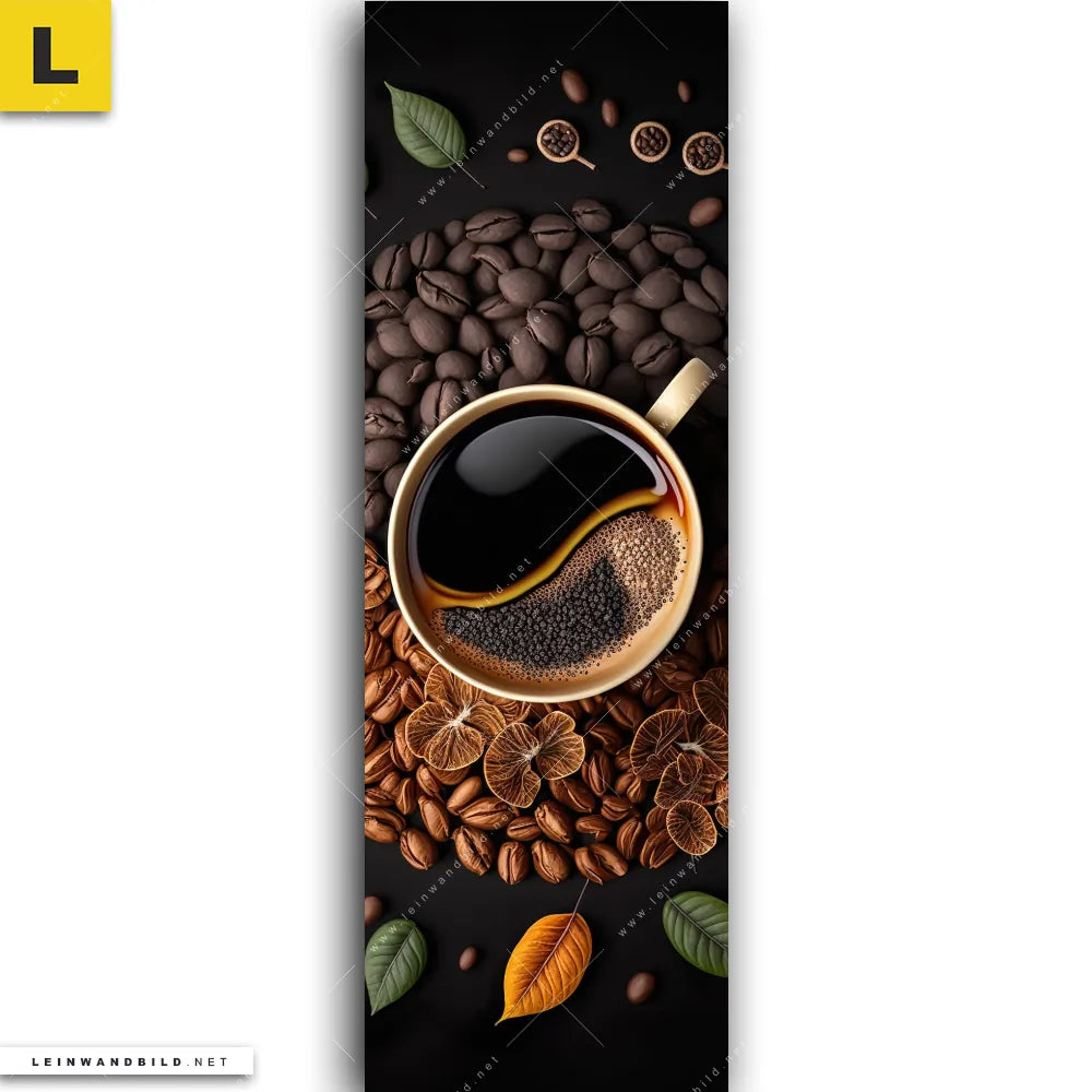 Du konfigurierst Dein individuelles Leinwandbild | Kaffee mit Blattdekoration | Schmal und wir produzieren es NEU für Dich. Unsere Essen - Trinken Leinwände sind KEINE Lagerware. Du bist Dir unsicher, welches Motiv oder Format das richtige für dein individuelles Keilrahmenbild ist, dann helfen wir dir gerne weiter und beraten dich!