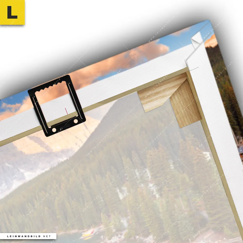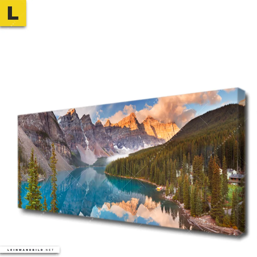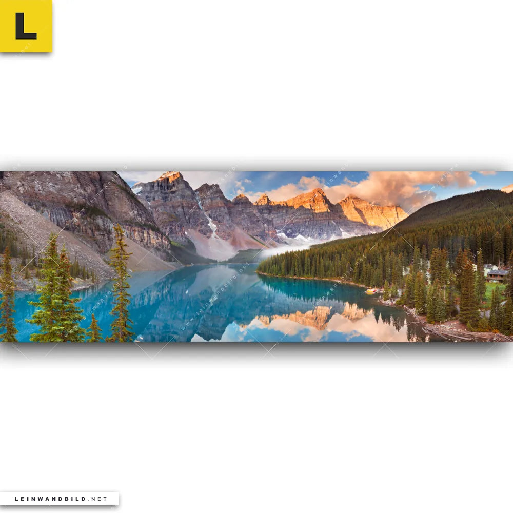 Du konfigurierst Dein individuelles Leinwandbild | Kanadischer Bergsee | Panorama und wir produzieren es NEU für Dich. Unsere Landschaften Leinwände sind KEINE Lagerware. Du bist Dir unsicher, welches Motiv oder Format das richtige für dein individuelles Keilrahmenbild ist, dann helfen wir dir gerne weiter und beraten dich!