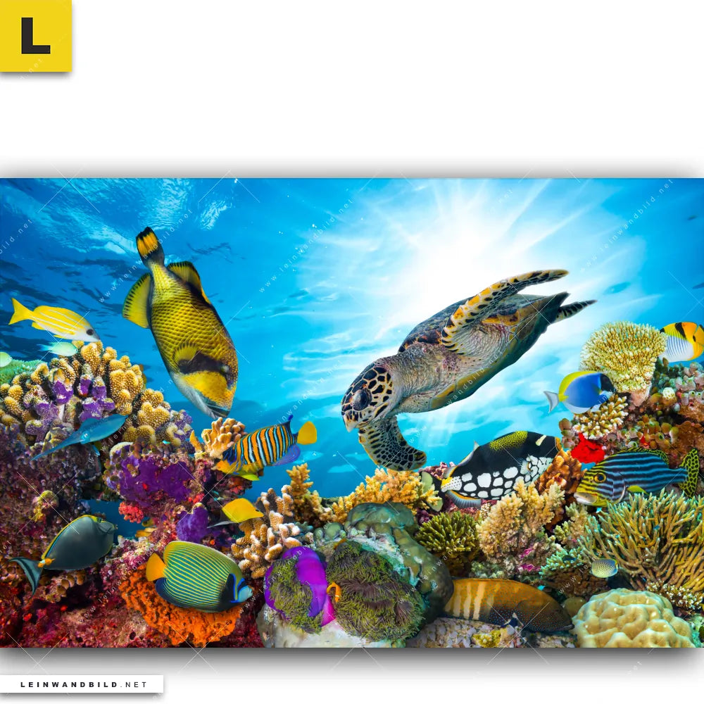 Bitte beachte, dass die Farben, der auf dem Monitor abgebildeten Korallen mit Schildkröte und Fischen Darstellung, möglicherweise von den Originalfarben abweichen können.