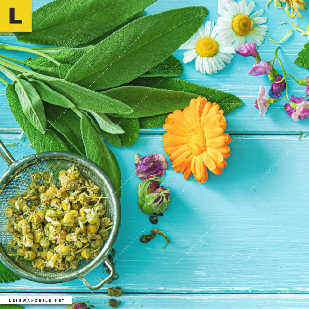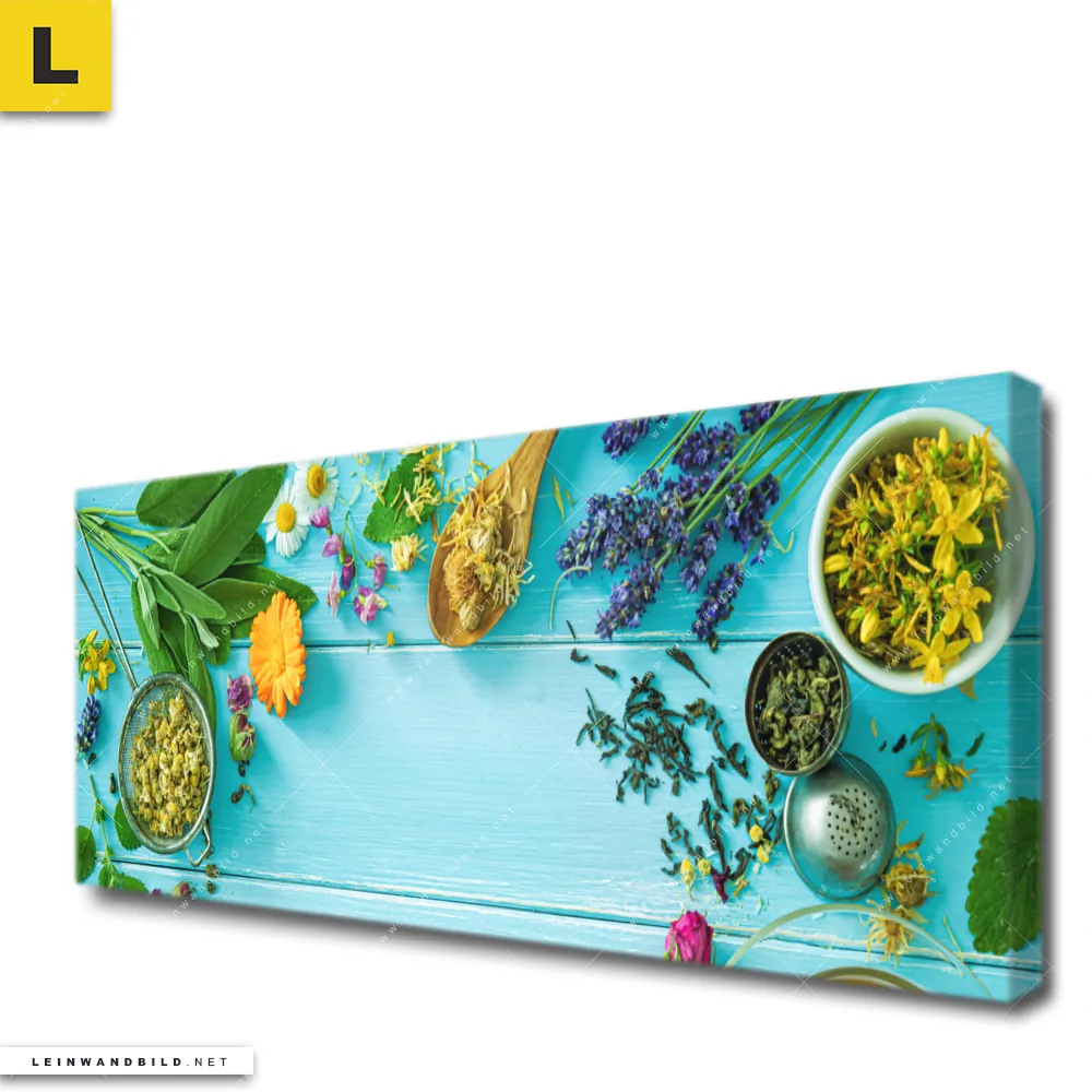 Du konfigurierst Dein individuelles Leinwandbild | Kräuter auf blauem Holztisch | Panorama und wir produzieren es NEU für Dich. Unsere Essen - Trinken, Blumen - Botanik Leinwände sind KEINE Lagerware. Du bist Dir unsicher, welches Motiv oder Format das richtige für dein individuelles Keilrahmenbild ist, dann helfen wir dir gerne weiter und beraten dich!