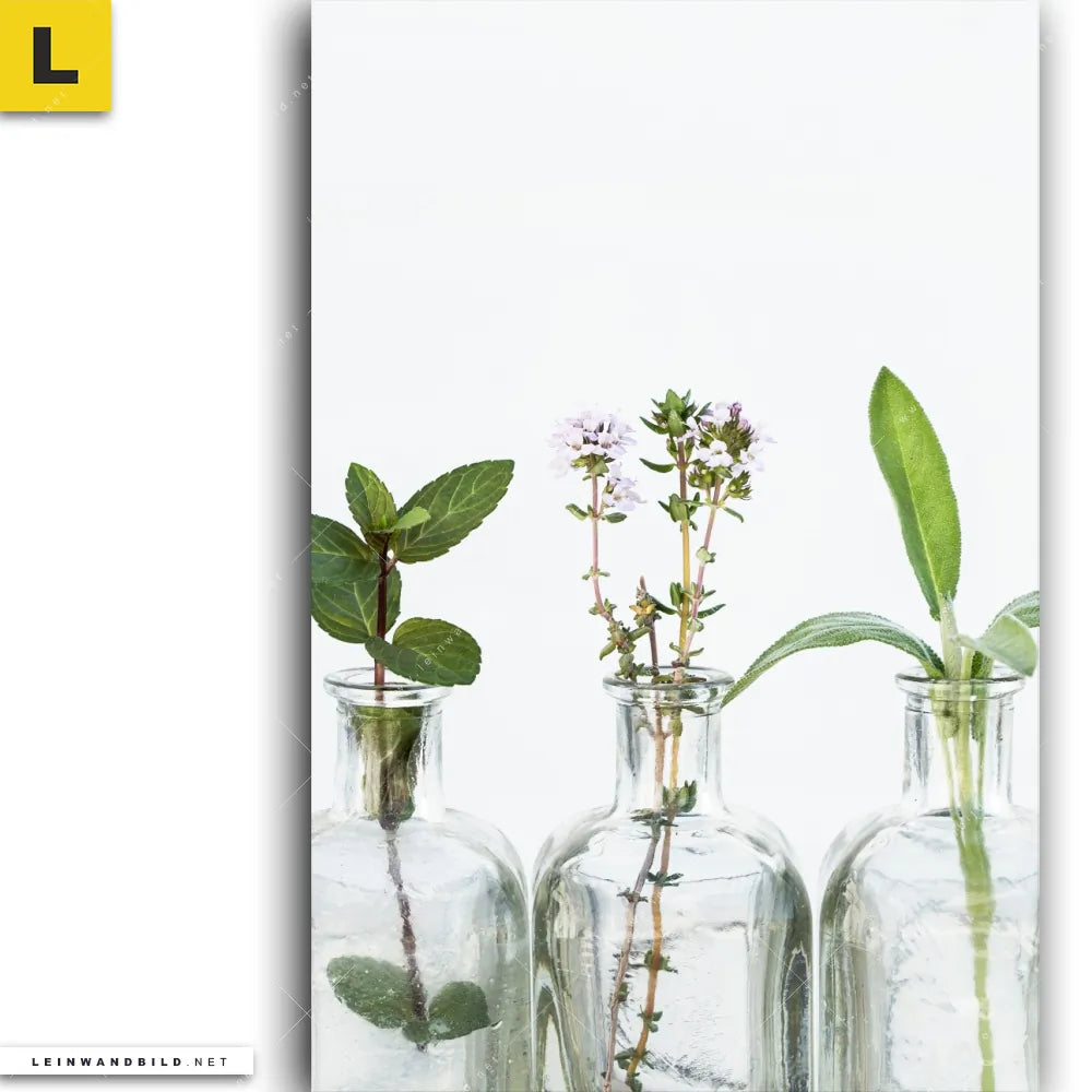 Leinwandbild | Kräuter in Flaschen | Hochformat
