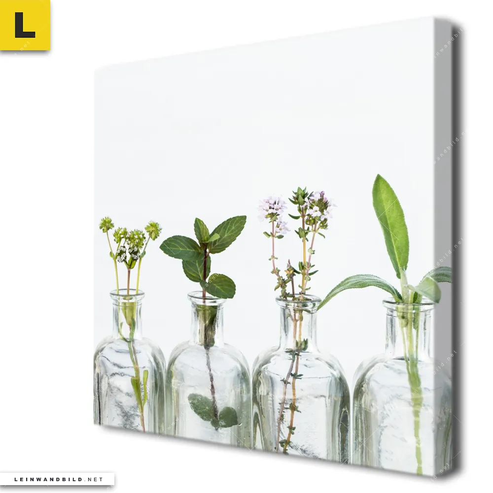Du konfigurierst Dein individuelles Leinwandbild | Kräuter in Flaschen | Quadrat und wir produzieren es NEU für Dich. Unsere Essen - Trinken Leinwände sind KEINE Lagerware. Du bist Dir unsicher, welches Motiv oder Format das richtige für dein individuelles Keilrahmenbild ist, dann helfen wir dir gerne weiter und beraten dich!
