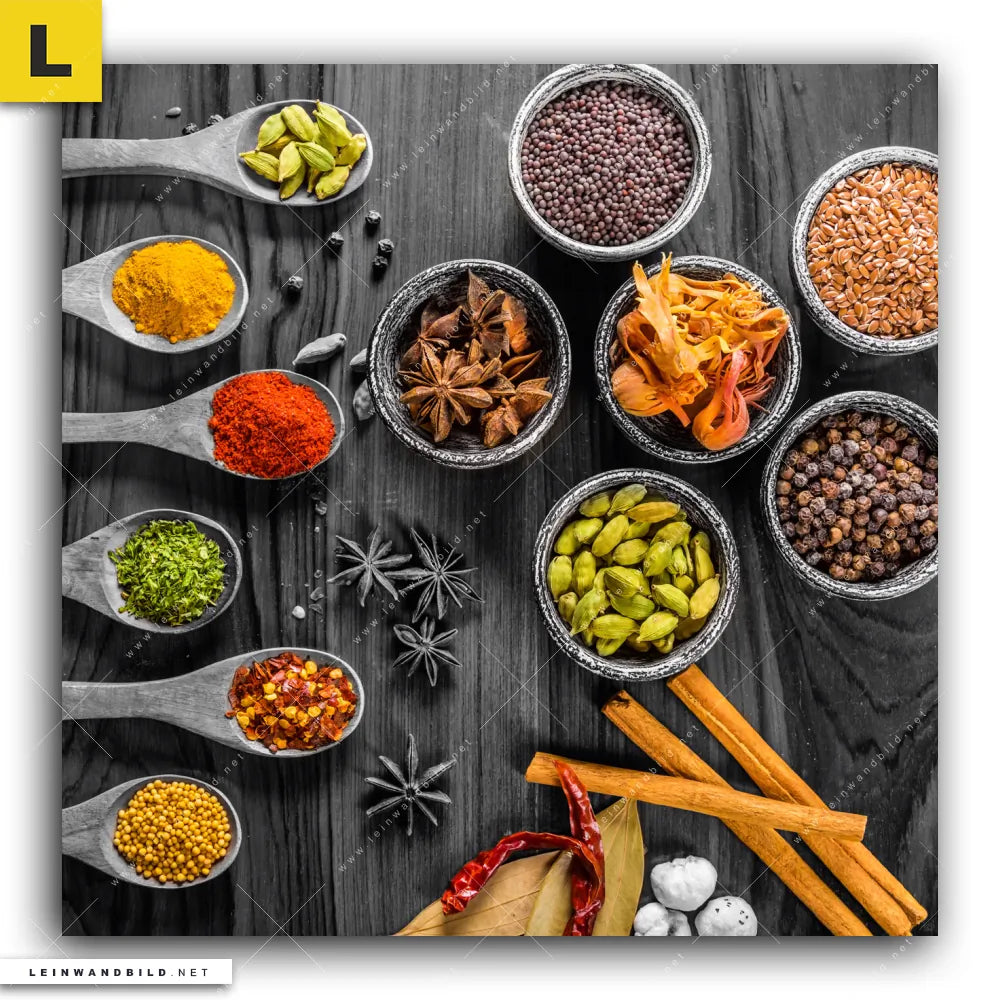 Bitte beachte, dass die Farben, der auf dem Monitor abgebildeten Gewürze mit dunklem Untergrund Darstellung, möglicherweise von den Originalfarben abweichen können.