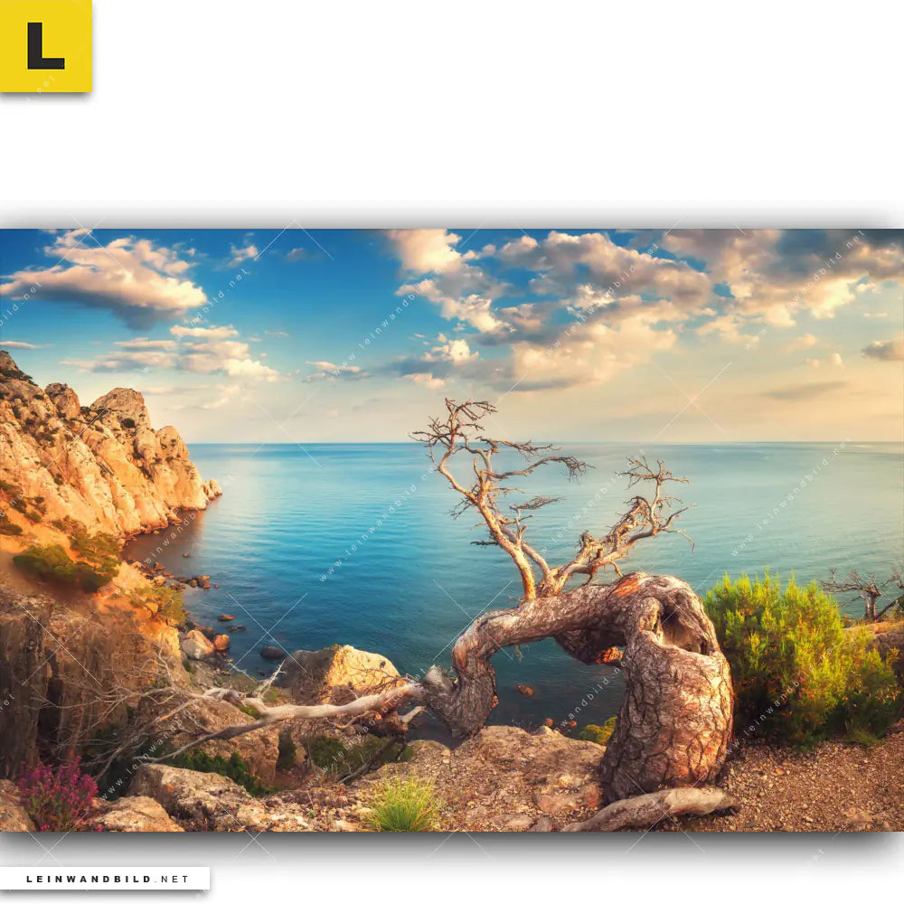 Leinwandbild | Küstenlandschaft mit altem Baum | Querformat