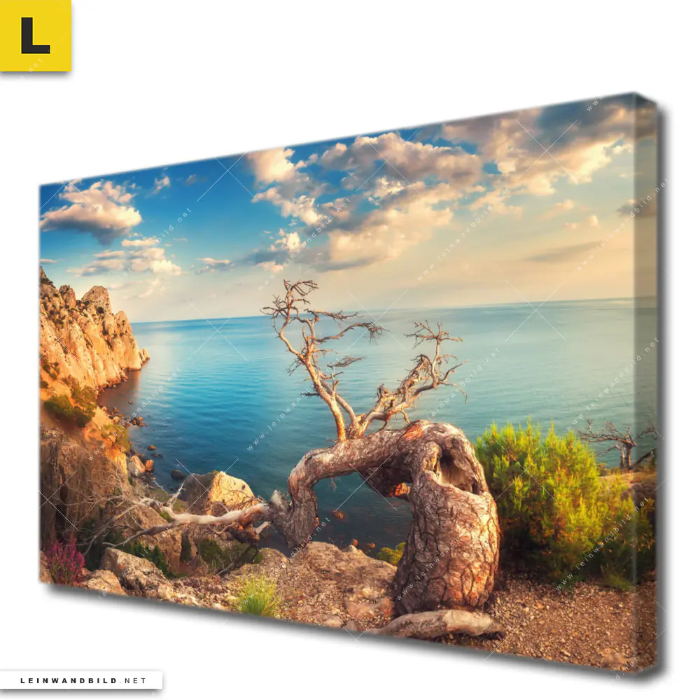 Du konfigurierst Dein individuelles Leinwandbild | Küstenlandschaft mit altem Baum | Querformat und wir produzieren es NEU für Dich. Unsere Landschaften, Strand - Meer Leinwände sind KEINE Lagerware. Du bist Dir unsicher, welches Motiv oder Format das richtige für dein individuelles Keilrahmenbild ist, dann helfen wir dir gerne weiter und beraten dich!