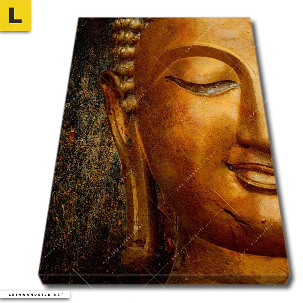 Leinwandbild | Lächelnder Buddha in Gold | Hochformat