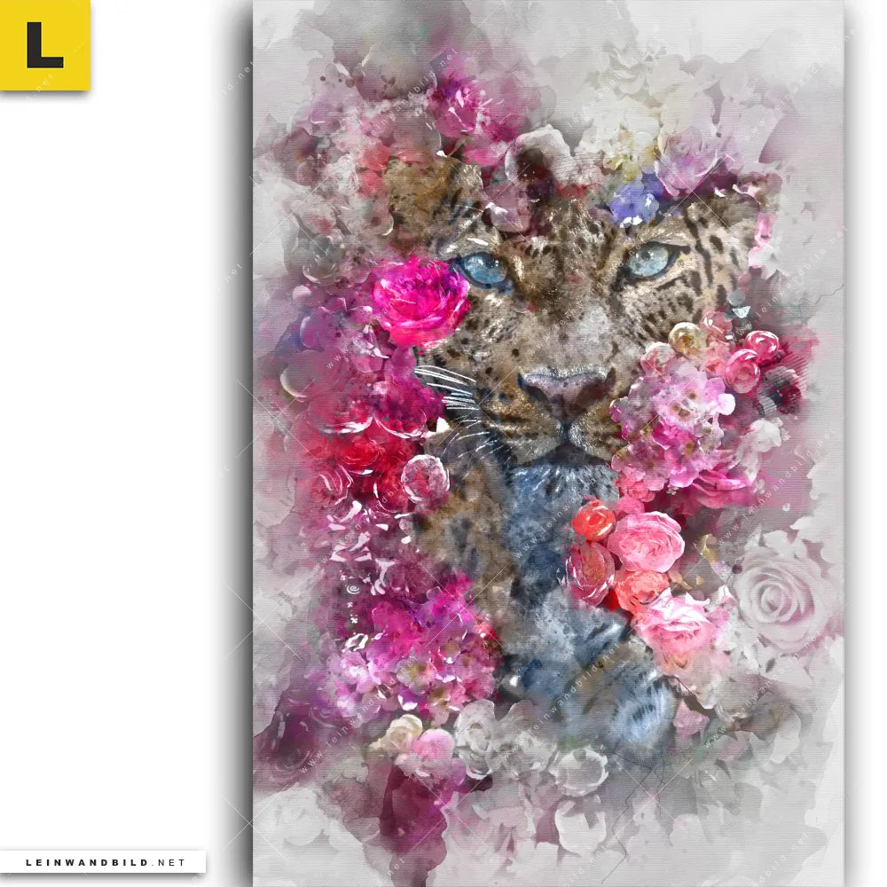Du konfigurierst Dein individuelles Leinwandbild | Leopard & Blumen | Hochformat und wir produzieren es NEU für Dich. Unsere Tierwelt, Blumen - Botanik Leinwände sind KEINE Lagerware. Du bist Dir unsicher, welches Motiv oder Format das richtige für dein individuelles Keilrahmenbild ist, dann helfen wir dir gerne weiter und beraten dich!