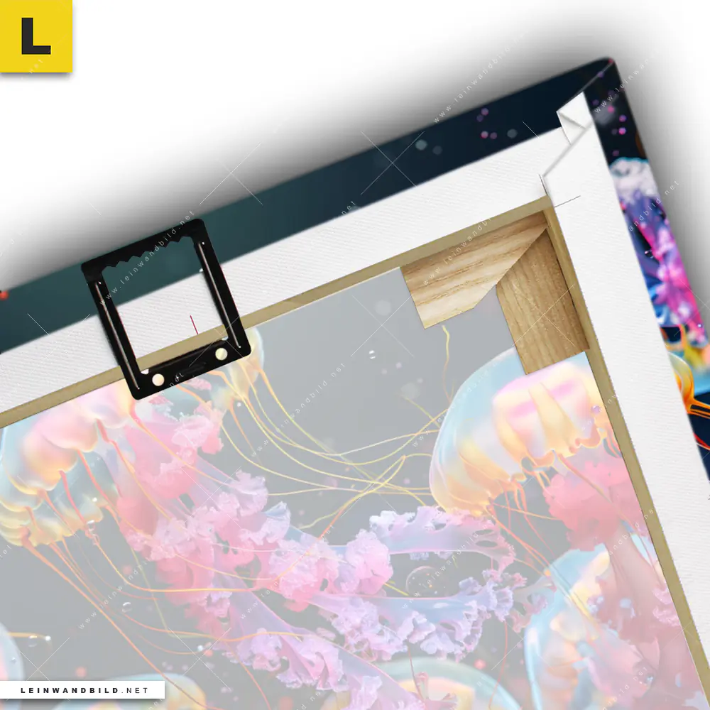 Du konfigurierst Dein individuelles Leinwandbild | Leuchtende Quallen unter Wasser | Querformat und wir produzieren es NEU für Dich. Unsere Strand - Meer, Tierwelt Leinwände sind KEINE Lagerware. Du bist Dir unsicher, welches Motiv oder Format das richtige für dein individuelles Keilrahmenbild ist, dann helfen wir dir gerne weiter und beraten dich!