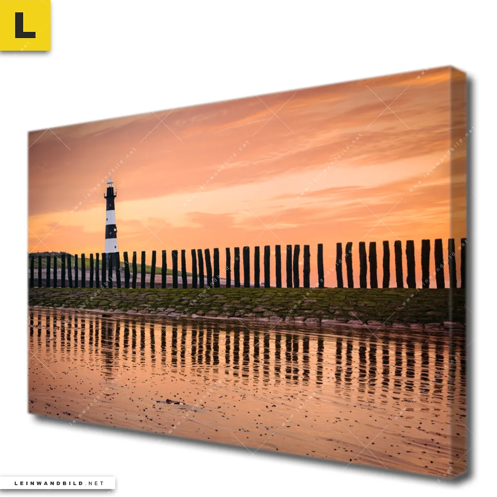Du konfigurierst Dein individuelles Leinwandbild | Leuchtturm bei Sonnenuntergang | Querformat und wir produzieren es NEU für Dich. Unsere Landschaften, Strand - Meer Leinwände sind KEINE Lagerware. Du bist Dir unsicher, welches Motiv oder Format das richtige für dein individuelles Keilrahmenbild ist, dann helfen wir dir gerne weiter und beraten dich!