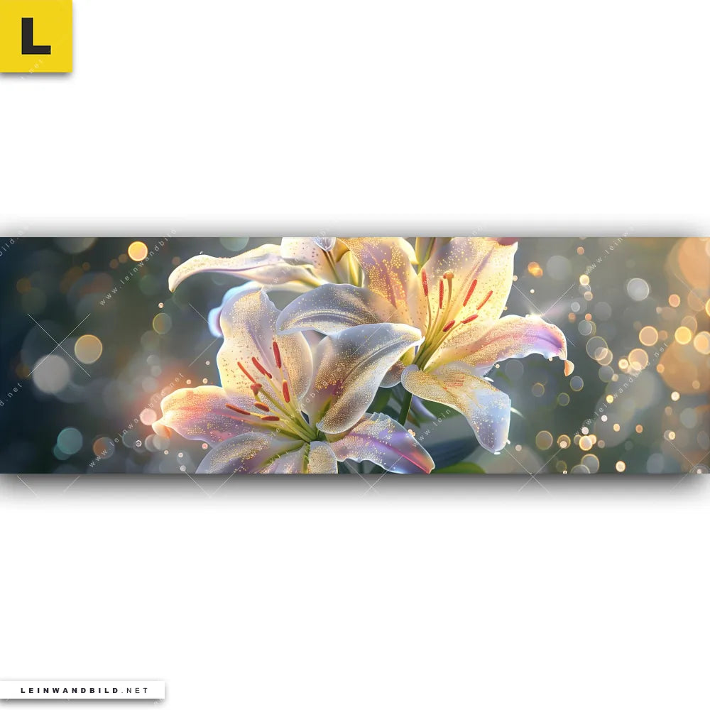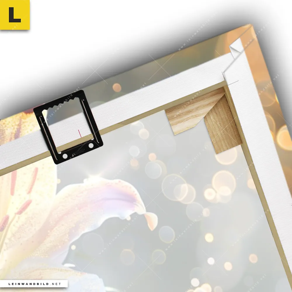 Du konfigurierst Dein individuelles Leinwandbild | Lilien im Morgenlicht | Panorama und wir produzieren es NEU für Dich. Unsere Blumen - Botanik Leinwände sind KEINE Lagerware. Du bist Dir unsicher, welches Motiv oder Format das richtige für dein individuelles Keilrahmenbild ist, dann helfen wir dir gerne weiter und beraten dich!