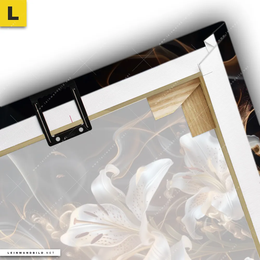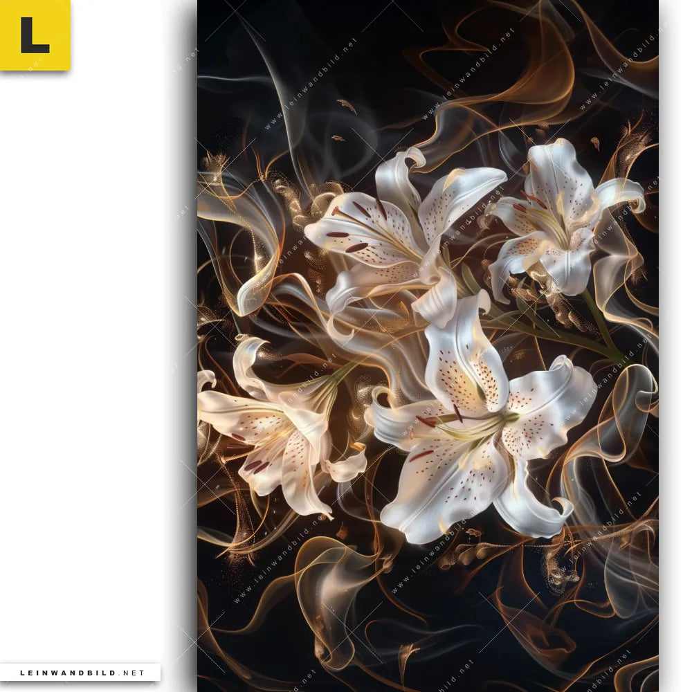 Leinwandbild | Lilien in goldenem Rauch | Hochformat