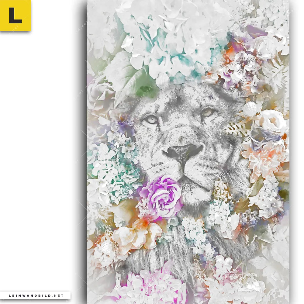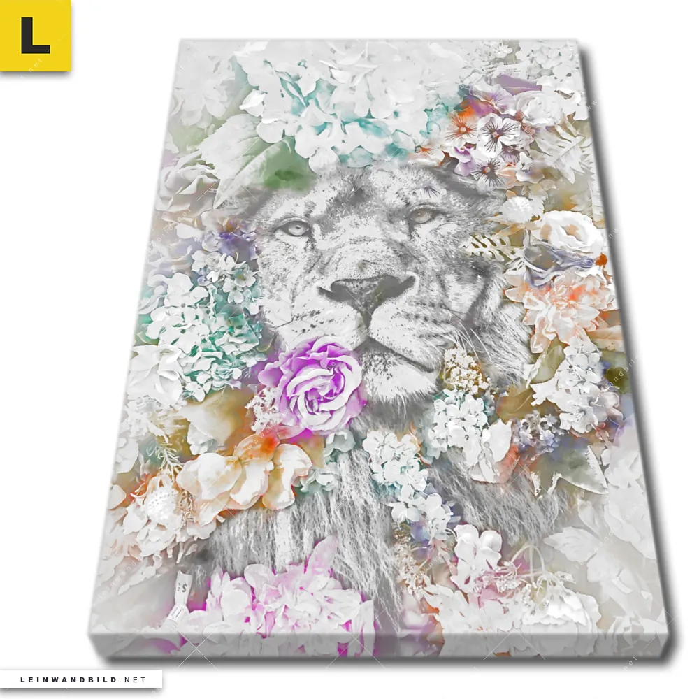 Du konfigurierst Dein individuelles Leinwandbild | Löwe & Blumen | Hochformat und wir produzieren es NEU für Dich. Unsere Tierwelt, Blumen - Botanik Leinwände sind KEINE Lagerware. Du bist Dir unsicher, welches Motiv oder Format das richtige für dein individuelles Keilrahmenbild ist, dann helfen wir dir gerne weiter und beraten dich!