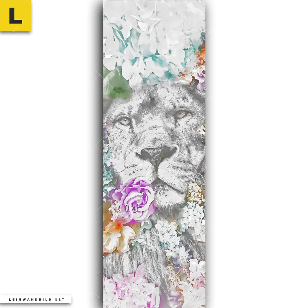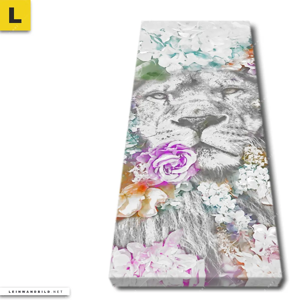 Du konfigurierst Dein individuelles Leinwandbild | Löwe & Blumen | Schmal und wir produzieren es NEU für Dich. Unsere Tierwelt, Blumen - Botanik Leinwände sind KEINE Lagerware. Du bist Dir unsicher, welches Motiv oder Format das richtige für dein individuelles Keilrahmenbild ist, dann helfen wir dir gerne weiter und beraten dich!