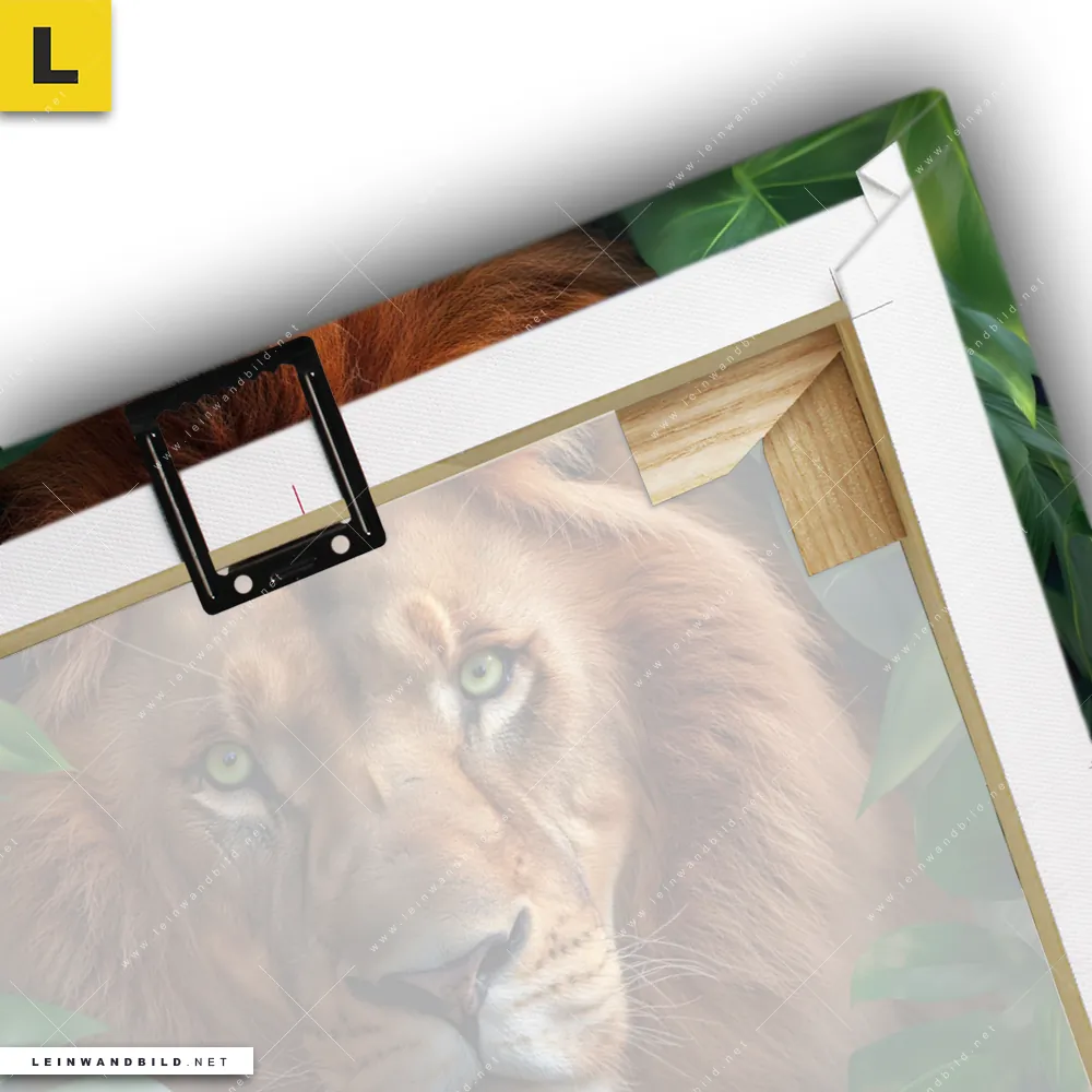 Du konfigurierst Dein individuelles Leinwandbild | Löwe im grünen Regenwald | Querformat und wir produzieren es NEU für Dich. Unsere Tierwelt, Blumen - Botanik Leinwände sind KEINE Lagerware. Du bist Dir unsicher, welches Motiv oder Format das richtige für dein individuelles Keilrahmenbild ist, dann helfen wir dir gerne weiter und beraten dich!