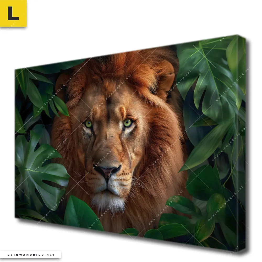 Leinwandbild | Löwe im grünen Regenwald | Querformat