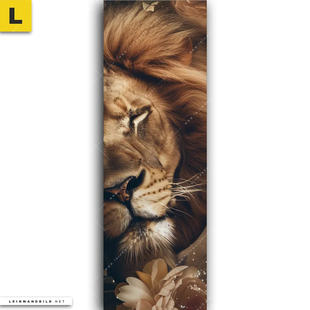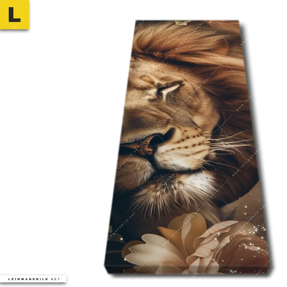 Du konfigurierst Dein individuelles Leinwandbild | Löwe schläft in Blüten | Schmal und wir produzieren es NEU für Dich. Unsere Tierwelt, Blumen - Botanik Leinwände sind KEINE Lagerware. Du bist Dir unsicher, welches Motiv oder Format das richtige für dein individuelles Keilrahmenbild ist, dann helfen wir dir gerne weiter und beraten dich!