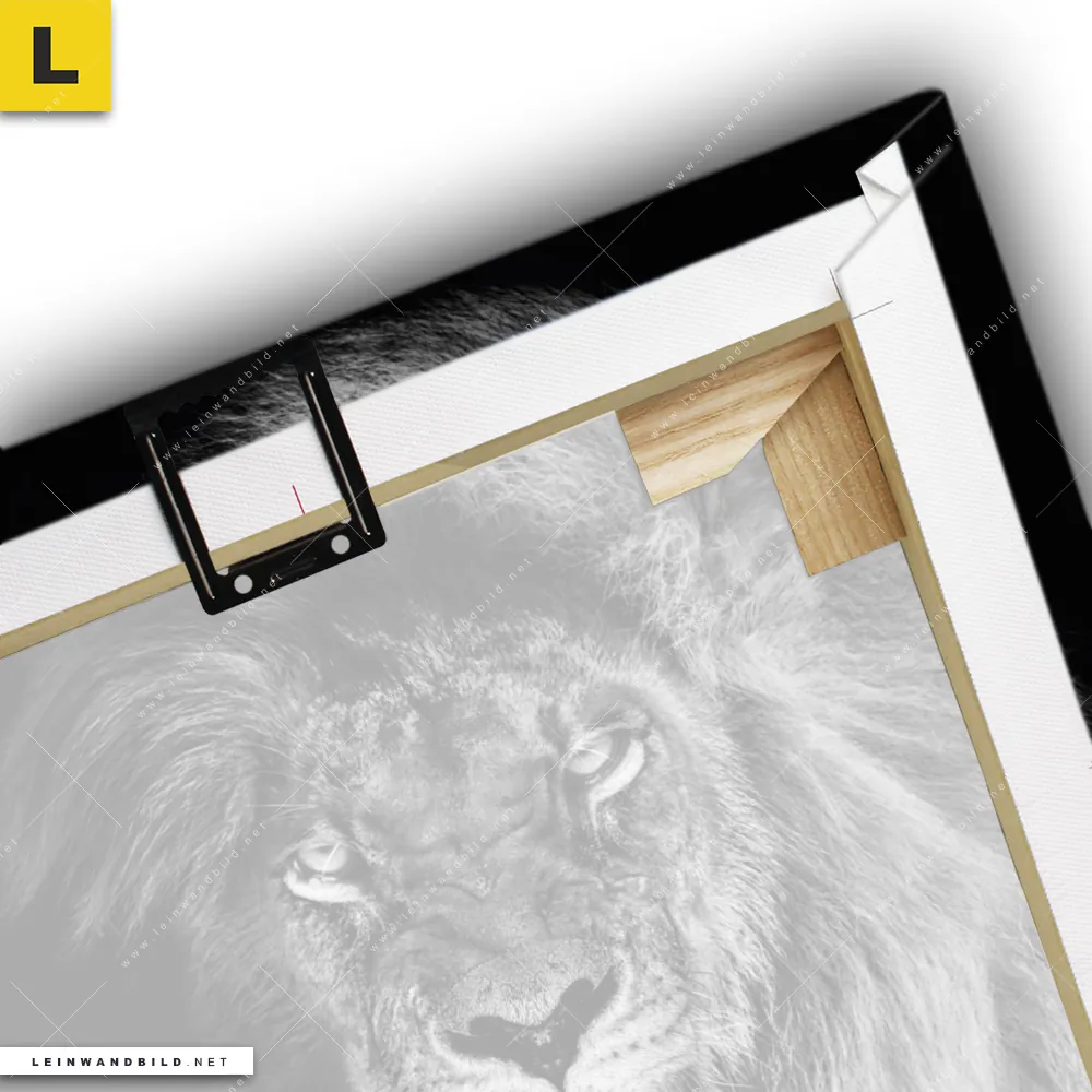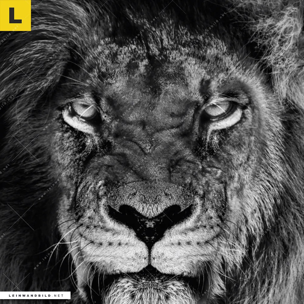 Du konfigurierst Dein individuelles Leinwandbild | Löwe Schwarzweiß | Quadrat und wir produzieren es NEU für Dich. Unsere Tierwelt Leinwände sind KEINE Lagerware. Du bist Dir unsicher, welches Motiv oder Format das richtige für dein individuelles Keilrahmenbild ist, dann helfen wir dir gerne weiter und beraten dich!