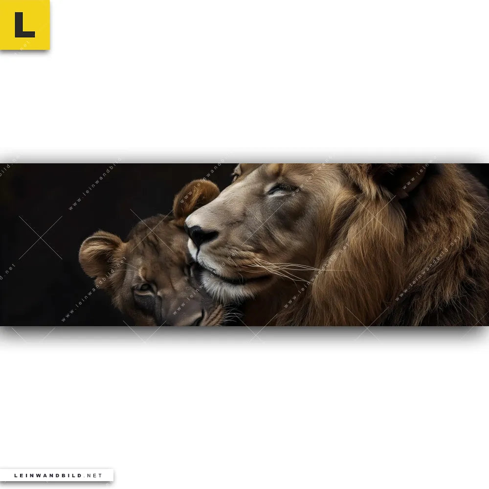 Du konfigurierst Dein individuelles Leinwandbild | Löwen - Stärke und Zärtlichkeit | Panorama und wir produzieren es NEU für Dich. Unsere Tierwelt Leinwände sind KEINE Lagerware. Du bist Dir unsicher, welches Motiv oder Format das richtige für dein individuelles Keilrahmenbild ist, dann helfen wir dir gerne weiter und beraten dich!