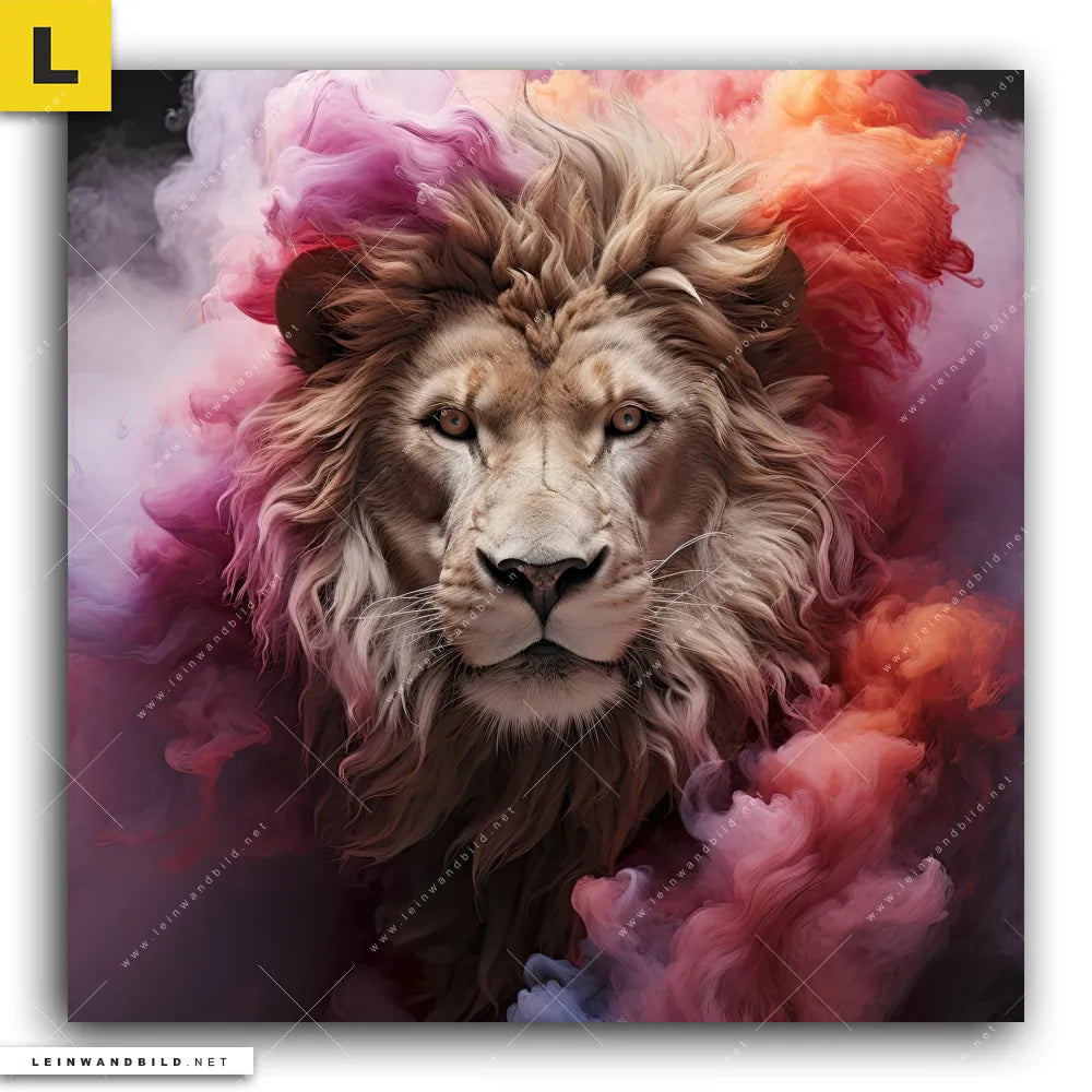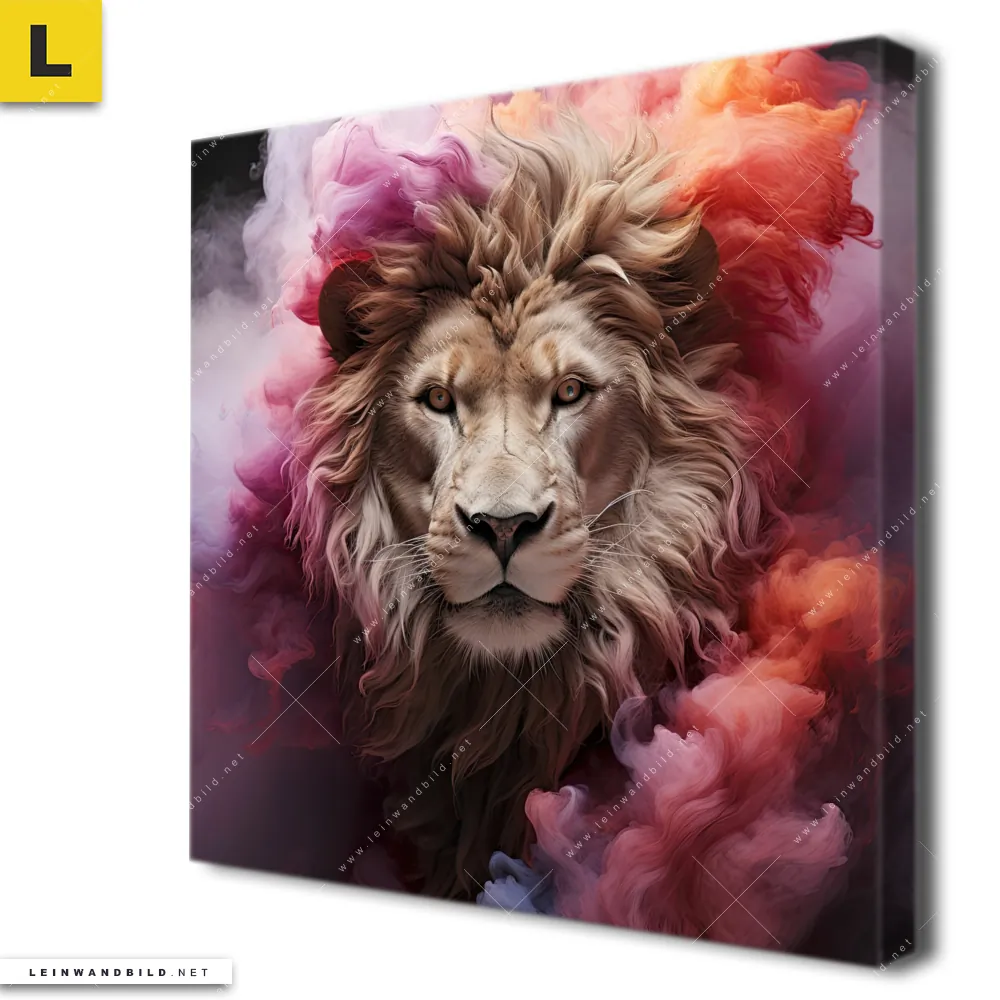 Du konfigurierst Dein individuelles Leinwandbild | Löwengesicht in buntem Rauch | Quadrat und wir produzieren es NEU für Dich. Unsere Tierwelt Leinwände sind KEINE Lagerware. Du bist Dir unsicher, welches Motiv oder Format das richtige für dein individuelles Keilrahmenbild ist, dann helfen wir dir gerne weiter und beraten dich!