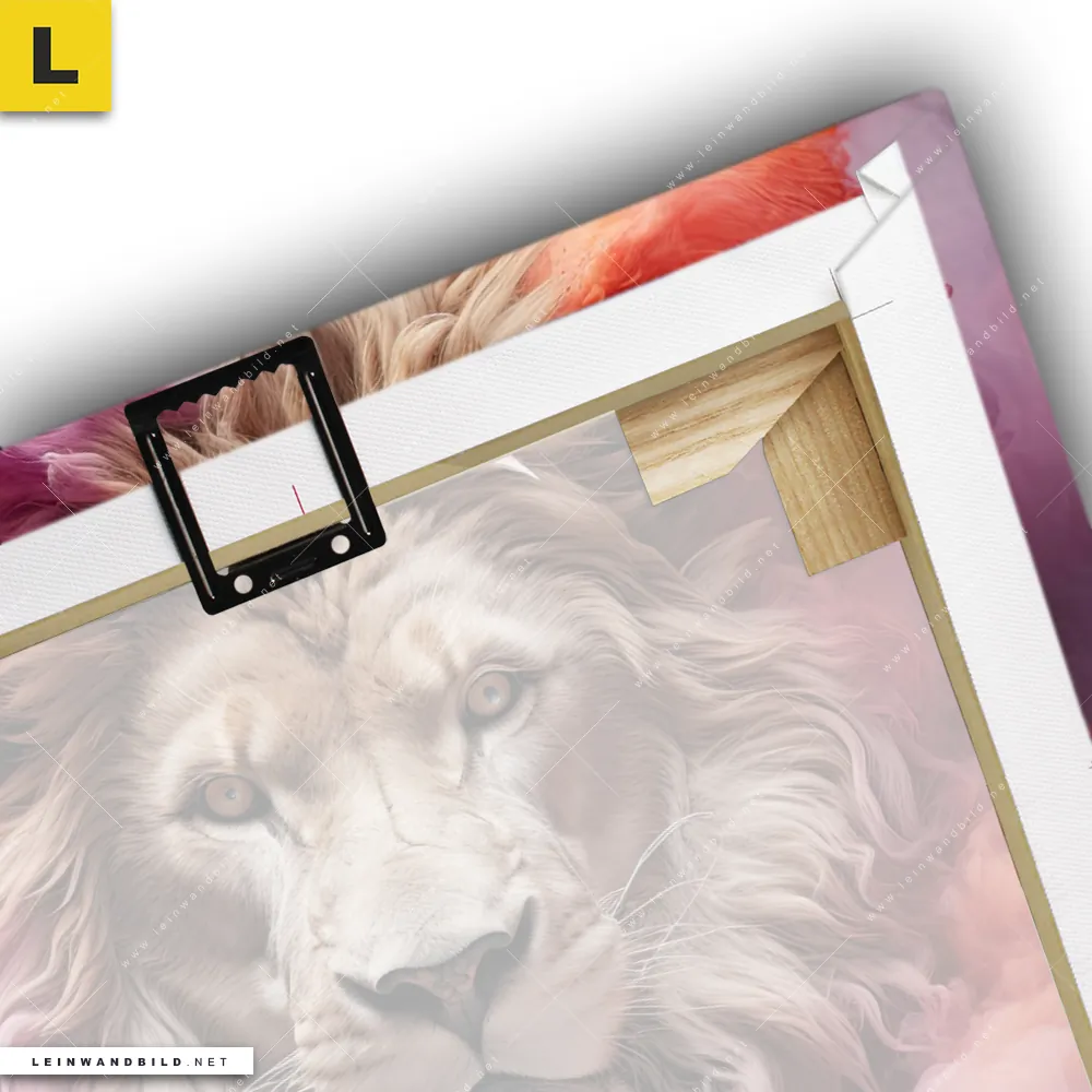 Du konfigurierst Dein individuelles Leinwandbild | Löwengesicht in buntem Rauch | Querformat und wir produzieren es NEU für Dich. Unsere Tierwelt Leinwände sind KEINE Lagerware. Du bist Dir unsicher, welches Motiv oder Format das richtige für dein individuelles Keilrahmenbild ist, dann helfen wir dir gerne weiter und beraten dich!