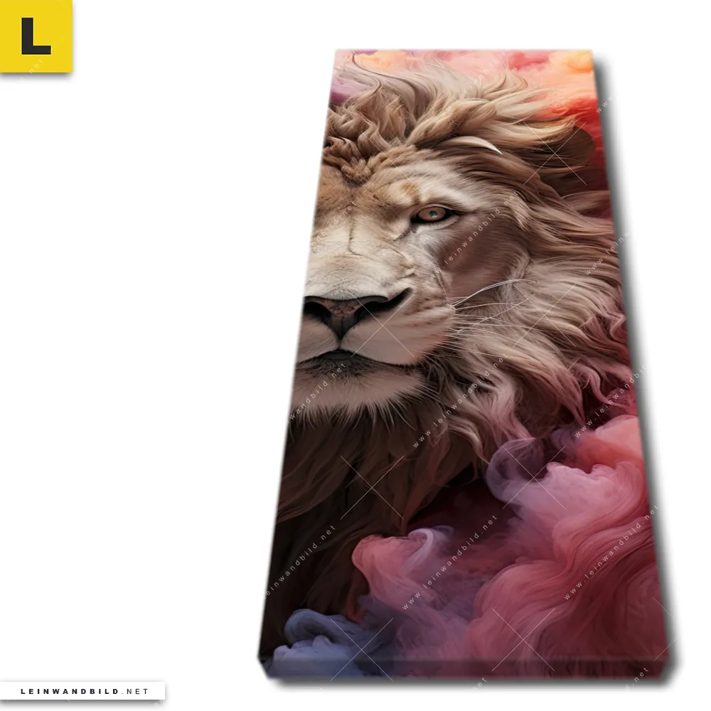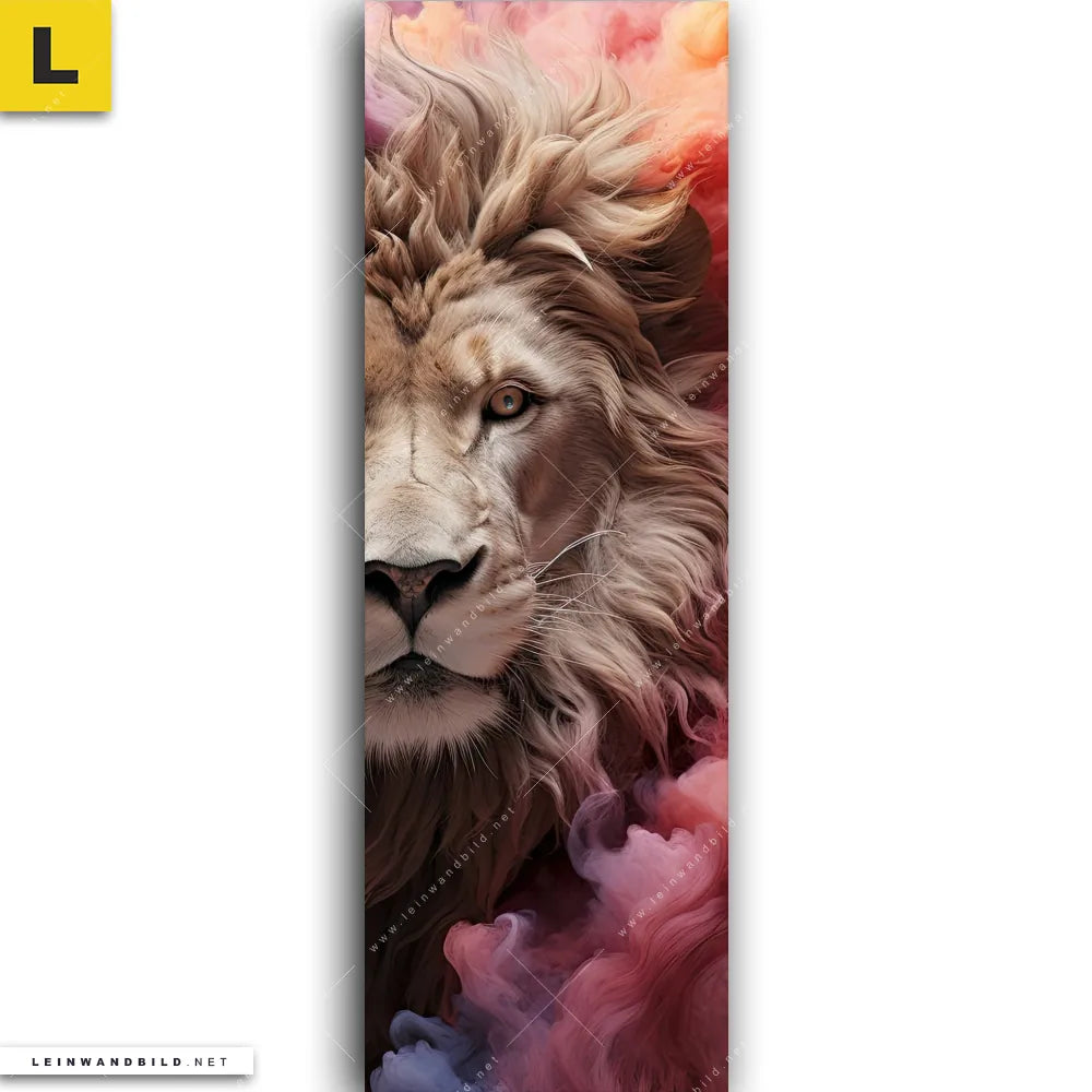 Du konfigurierst Dein individuelles Leinwandbild | Löwengesicht in buntem Rauch | Schmal und wir produzieren es NEU für Dich. Unsere Tierwelt Leinwände sind KEINE Lagerware. Du bist Dir unsicher, welches Motiv oder Format das richtige für dein individuelles Keilrahmenbild ist, dann helfen wir dir gerne weiter und beraten dich!