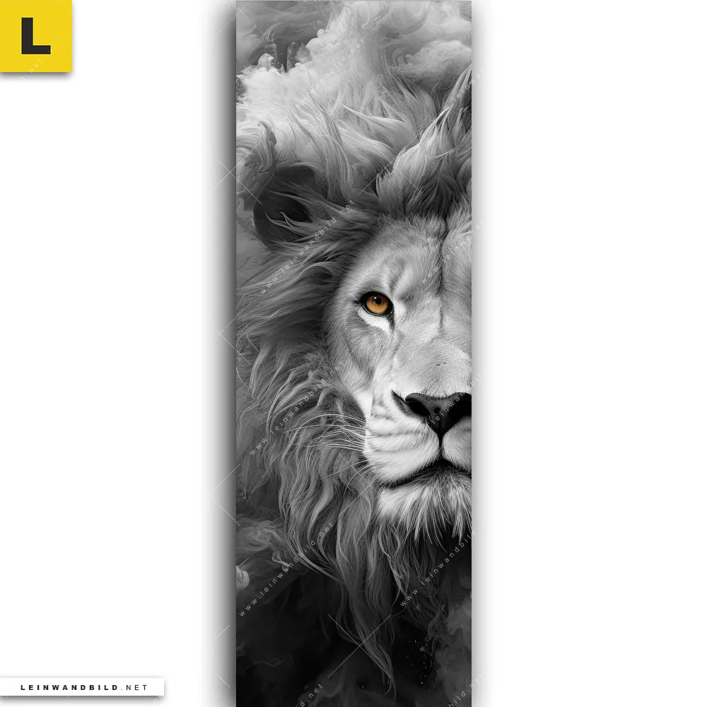 Du konfigurierst Dein individuelles Leinwandbild | Löwengesicht in Rauch | Schmal und wir produzieren es NEU für Dich. Unsere Tierwelt Leinwände sind KEINE Lagerware. Du bist Dir unsicher, welches Motiv oder Format das richtige für dein individuelles Keilrahmenbild ist, dann helfen wir dir gerne weiter und beraten dich!