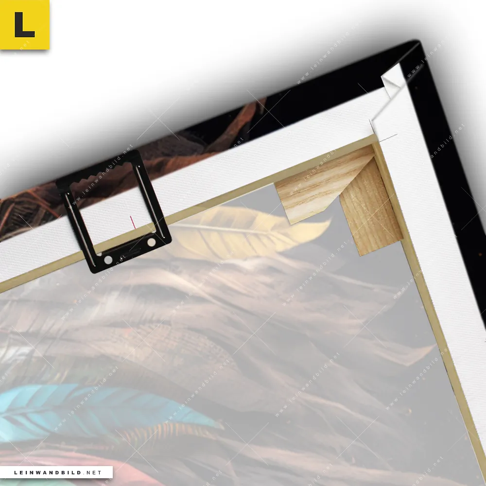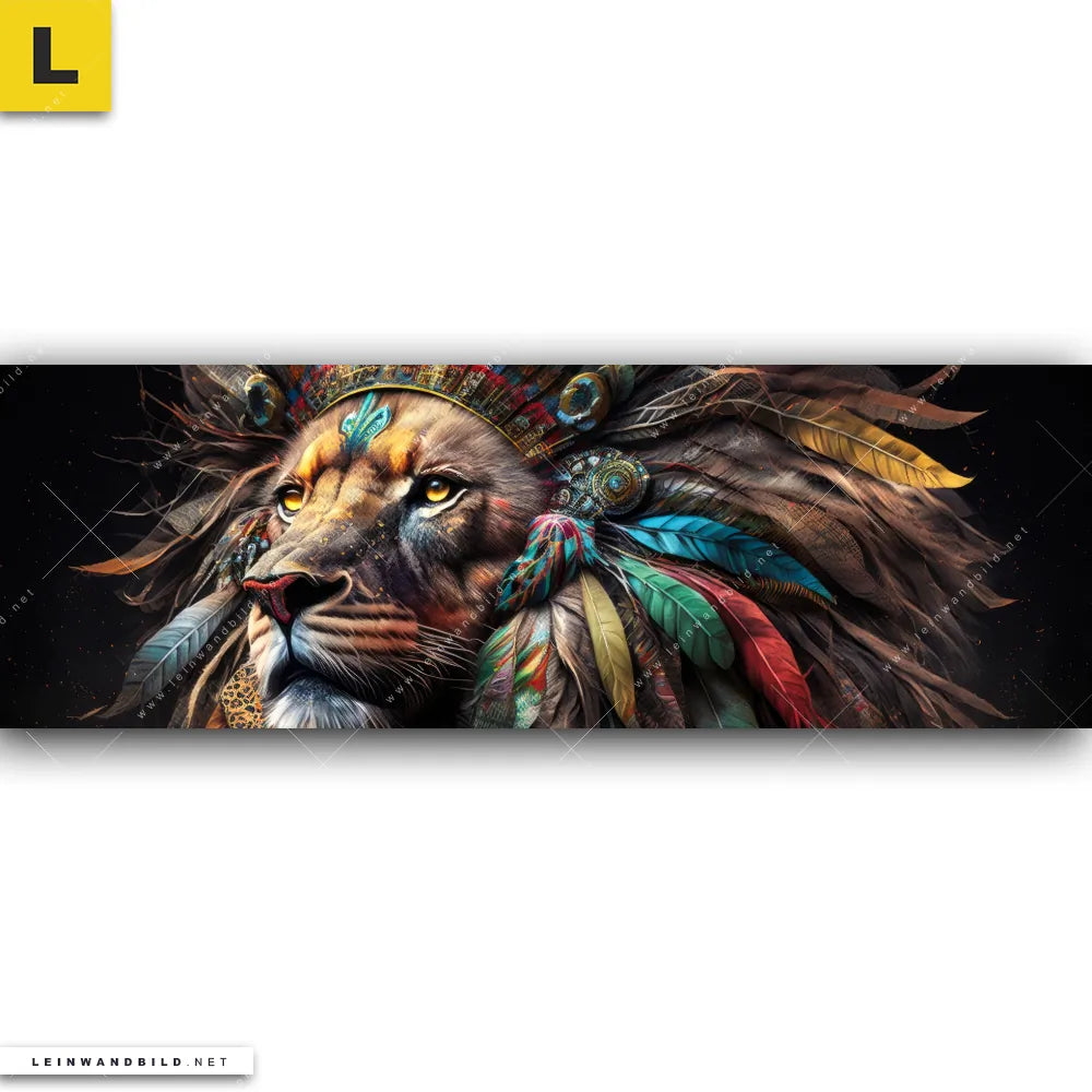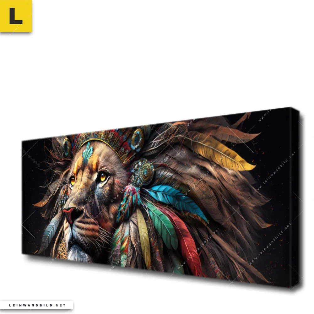 Du konfigurierst Dein individuelles Leinwandbild | Löwenkopf mit bunten Federn | Panorama und wir produzieren es NEU für Dich. Unsere Tierwelt Leinwände sind KEINE Lagerware. Du bist Dir unsicher, welches Motiv oder Format das richtige für dein individuelles Keilrahmenbild ist, dann helfen wir dir gerne weiter und beraten dich!