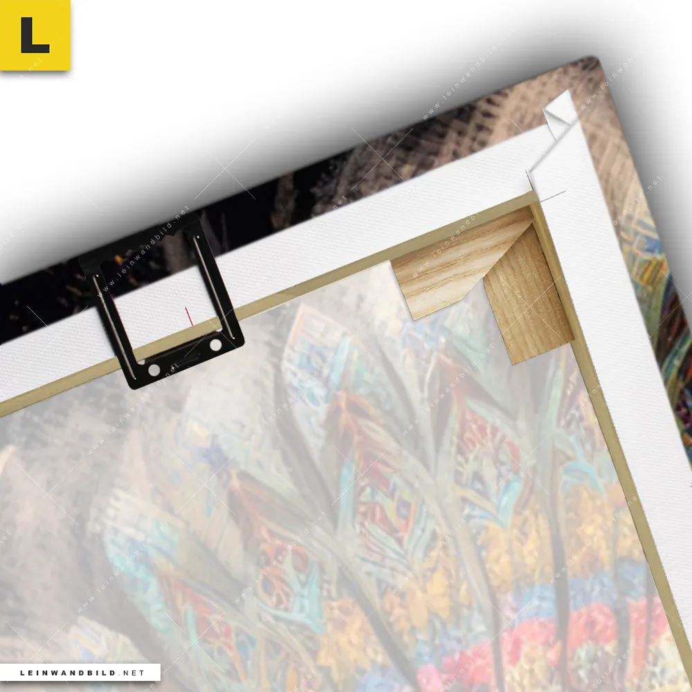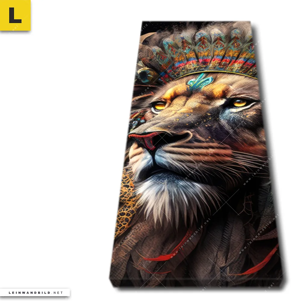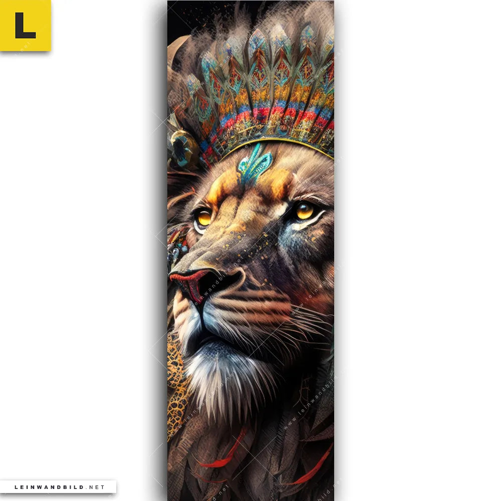 Du konfigurierst Dein individuelles Leinwandbild | Löwenkopf mit bunten Federn | Schmal und wir produzieren es NEU für Dich. Unsere Tierwelt Leinwände sind KEINE Lagerware. Du bist Dir unsicher, welches Motiv oder Format das richtige für dein individuelles Keilrahmenbild ist, dann helfen wir dir gerne weiter und beraten dich!