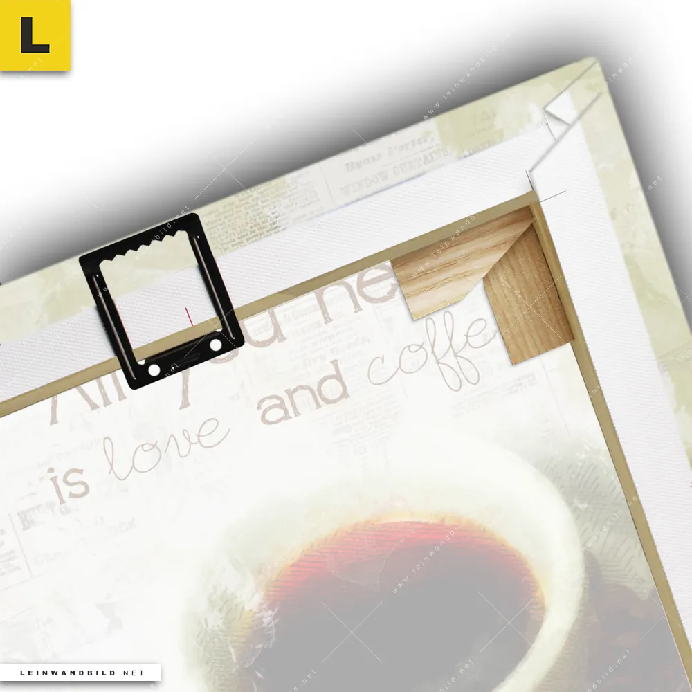 Du konfigurierst Dein individuelles Leinwandbild | Love & Coffee | Quadrat und wir produzieren es NEU für Dich. Unsere Essen - Trinken Leinwände sind KEINE Lagerware. Du bist Dir unsicher, welches Motiv oder Format das richtige für dein individuelles Keilrahmenbild ist, dann helfen wir dir gerne weiter und beraten dich!