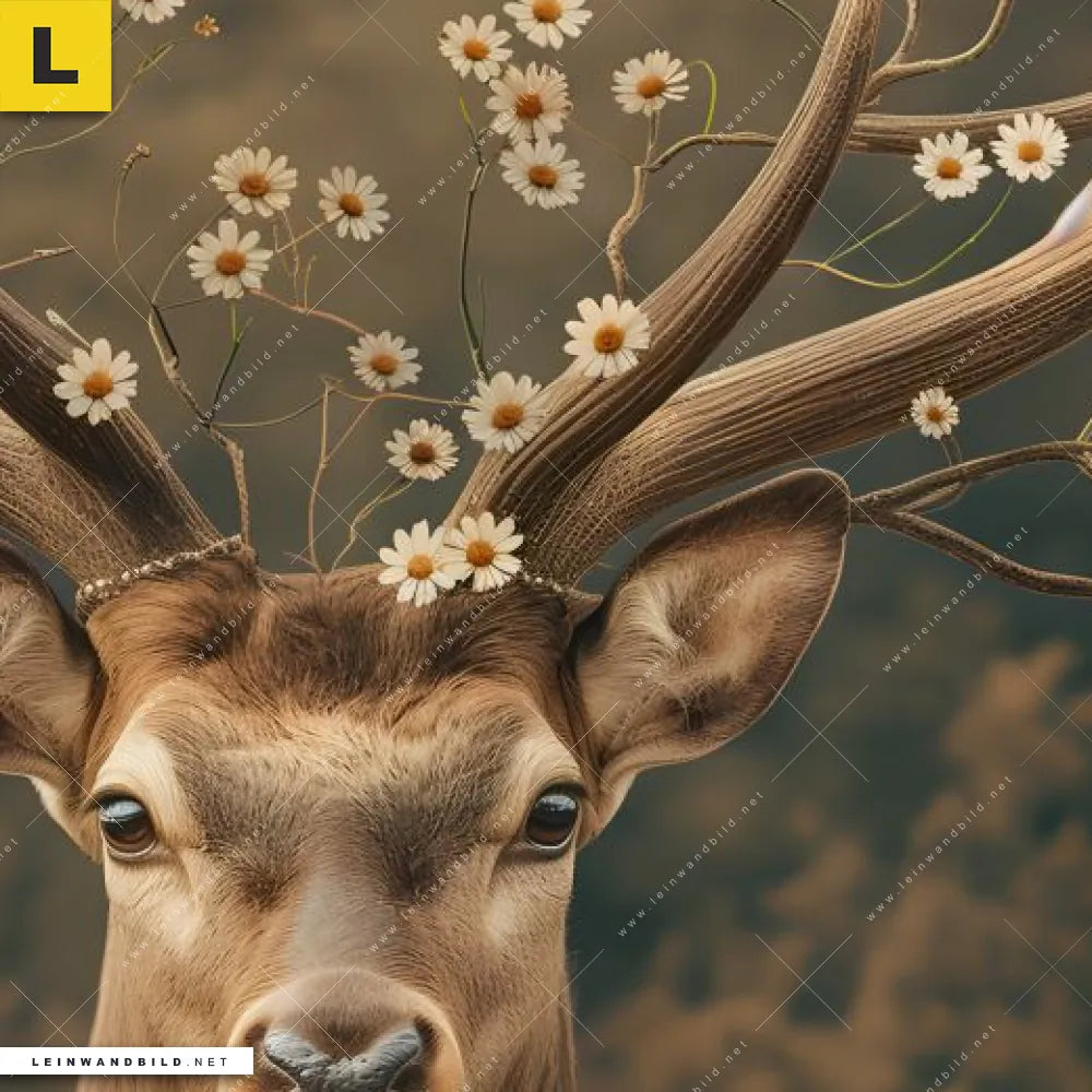 Bitte beachte, dass die Farben, der auf dem Monitor abgebildeten Naturkunst: Rothirsch und Ganseblümchen Darstellung, möglicherweise von den Originalfarben abweichen können.