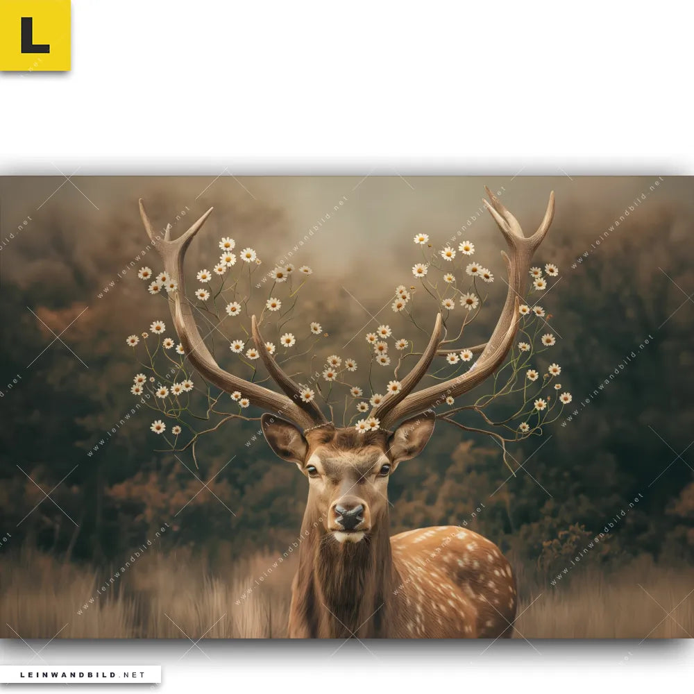 Bitte beachte, dass die Farben, der auf dem Monitor abgebildeten Naturkunst: Rothirsch und Ganseblümchen Darstellung, möglicherweise von den Originalfarben abweichen können.