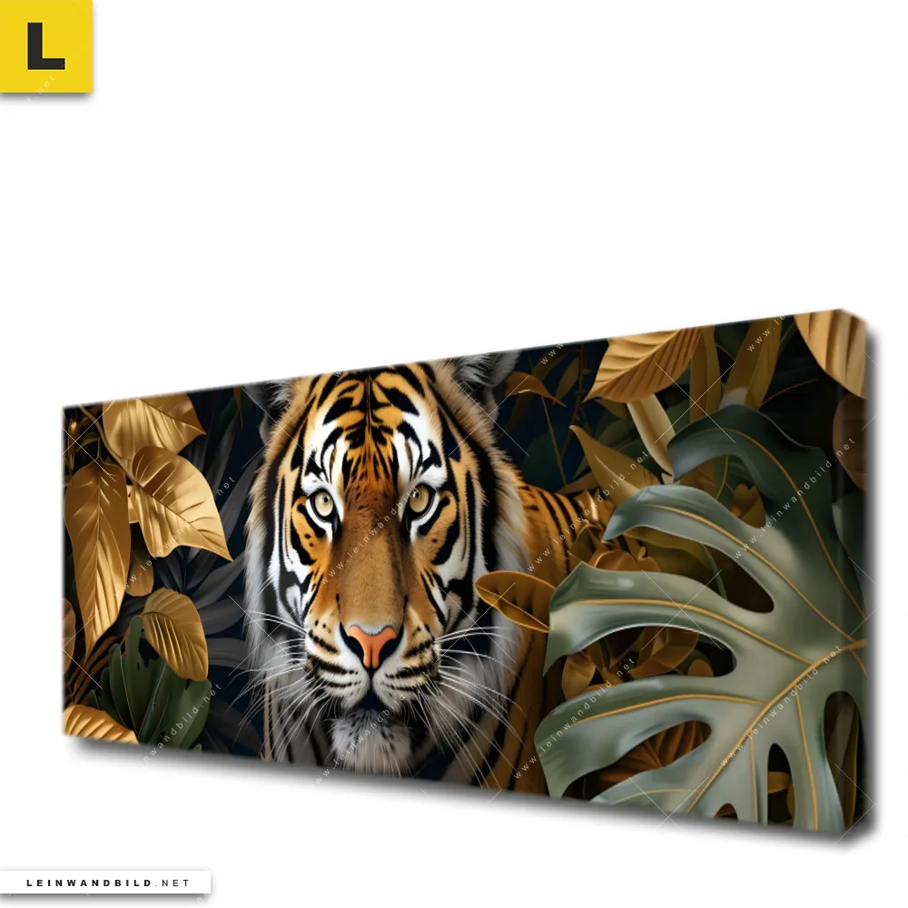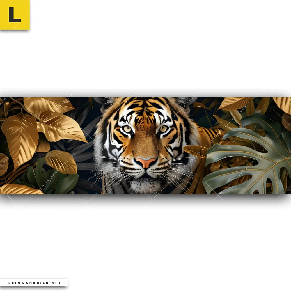Du konfigurierst Dein individuelles Leinwandbild | Majestätischer Tiger im Dschungel | Panorama und wir produzieren es NEU für Dich. Unsere Tierwelt, Blumen - Botanik Leinwände sind KEINE Lagerware. Du bist Dir unsicher, welches Motiv oder Format das richtige für dein individuelles Keilrahmenbild ist, dann helfen wir dir gerne weiter und beraten dich!