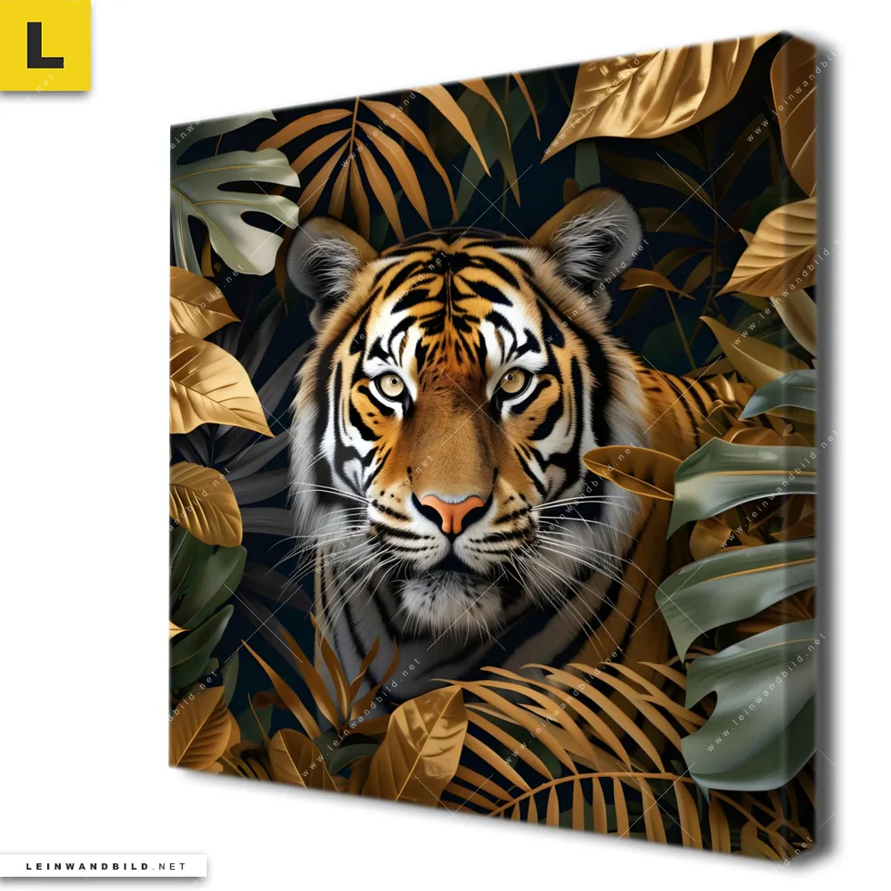 Du konfigurierst Dein individuelles Leinwandbild | Majestätischer Tiger im Dschungel | Quadrat und wir produzieren es NEU für Dich. Unsere Tierwelt, Blumen - Botanik Leinwände sind KEINE Lagerware. Du bist Dir unsicher, welches Motiv oder Format das richtige für dein individuelles Keilrahmenbild ist, dann helfen wir dir gerne weiter und beraten dich!