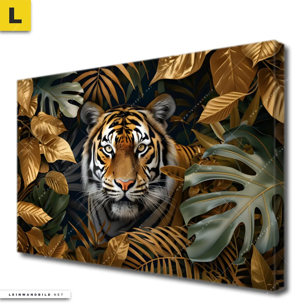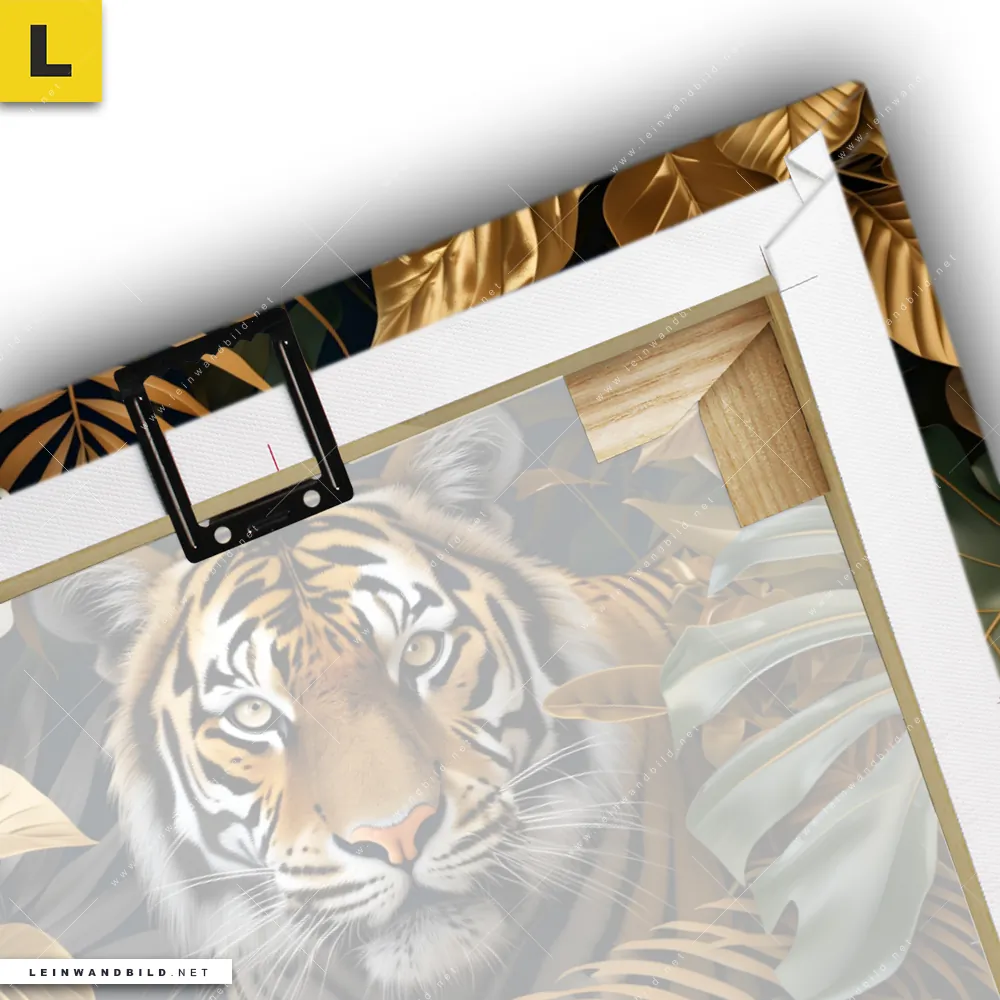 Du konfigurierst Dein individuelles Leinwandbild | Majestätischer Tiger im Dschungel | Querformat und wir produzieren es NEU für Dich. Unsere Tierwelt, Blumen - Botanik Leinwände sind KEINE Lagerware. Du bist Dir unsicher, welches Motiv oder Format das richtige für dein individuelles Keilrahmenbild ist, dann helfen wir dir gerne weiter und beraten dich!