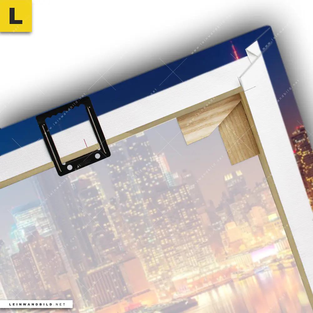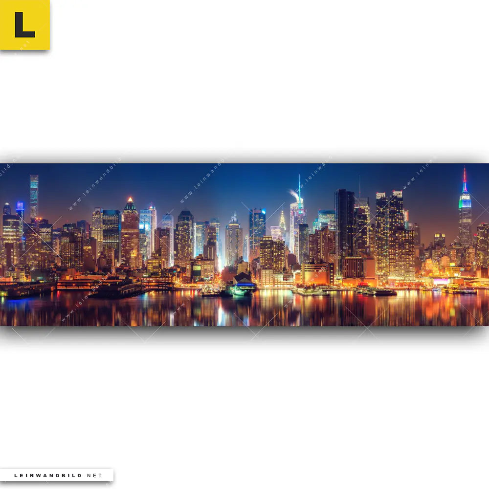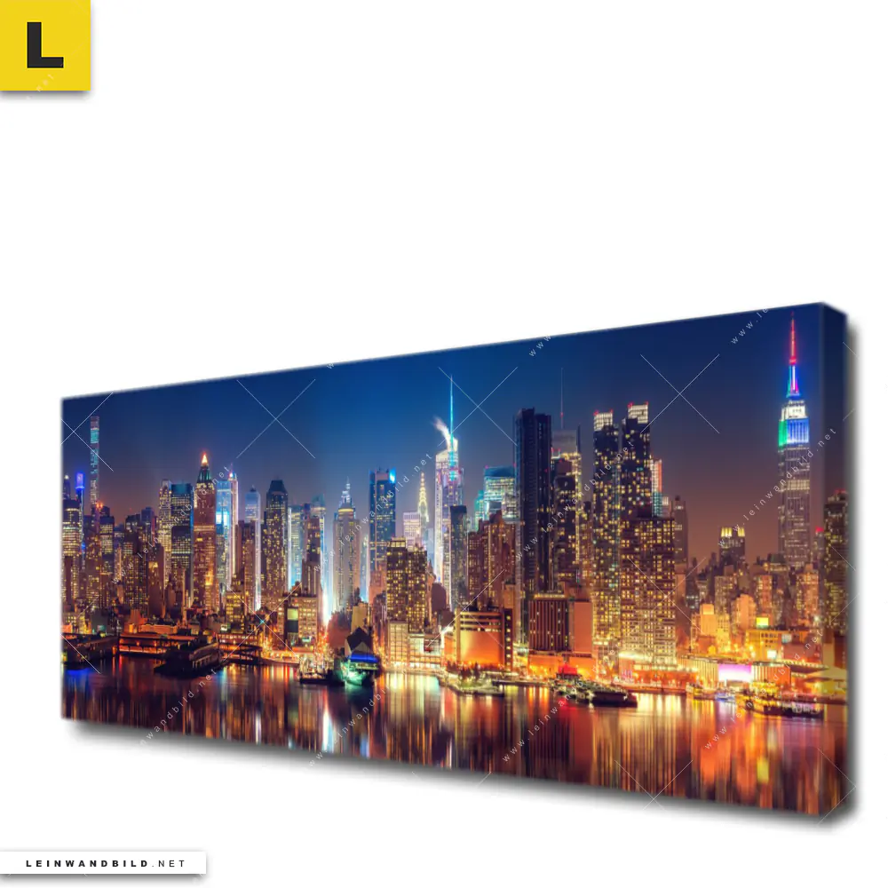 Du konfigurierst Dein individuelles Leinwandbild | Manhattan bei Nacht | Panorama und wir produzieren es NEU für Dich. Unsere Städte - Skylines Leinwände sind KEINE Lagerware. Du bist Dir unsicher, welches Motiv oder Format das richtige für dein individuelles Keilrahmenbild ist, dann helfen wir dir gerne weiter und beraten dich!