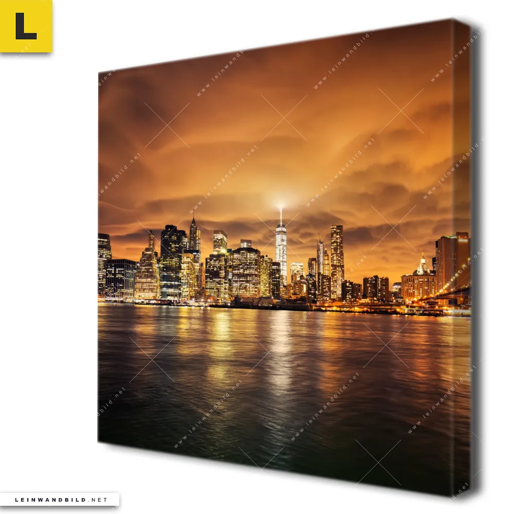 Du konfigurierst Dein individuelles Leinwandbild | Manhatten bei Sonnenuntergang | Quadrat und wir produzieren es NEU für Dich. Unsere Städte - Skylines Leinwände sind KEINE Lagerware. Du bist Dir unsicher, welches Motiv oder Format das richtige für dein individuelles Keilrahmenbild ist, dann helfen wir dir gerne weiter und beraten dich!