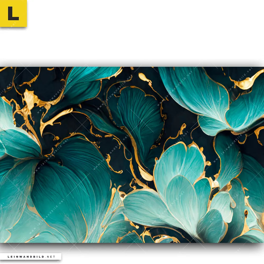 Leinwandbild | Marmor Blüten in türkis & gold | Querformat