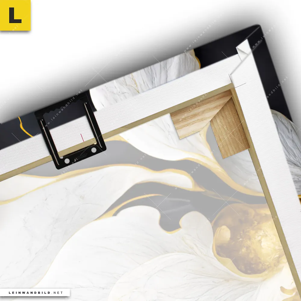 Du konfigurierst Dein individuelles Leinwandbild | Marmor Blüten in weiß & gold | Hochformat und wir produzieren es NEU für Dich. Unsere Muster - Texturen, Blumen - Botanik Leinwände sind KEINE Lagerware. Du bist Dir unsicher, welches Motiv oder Format das richtige für dein individuelles Keilrahmenbild ist, dann helfen wir dir gerne weiter und beraten dich!