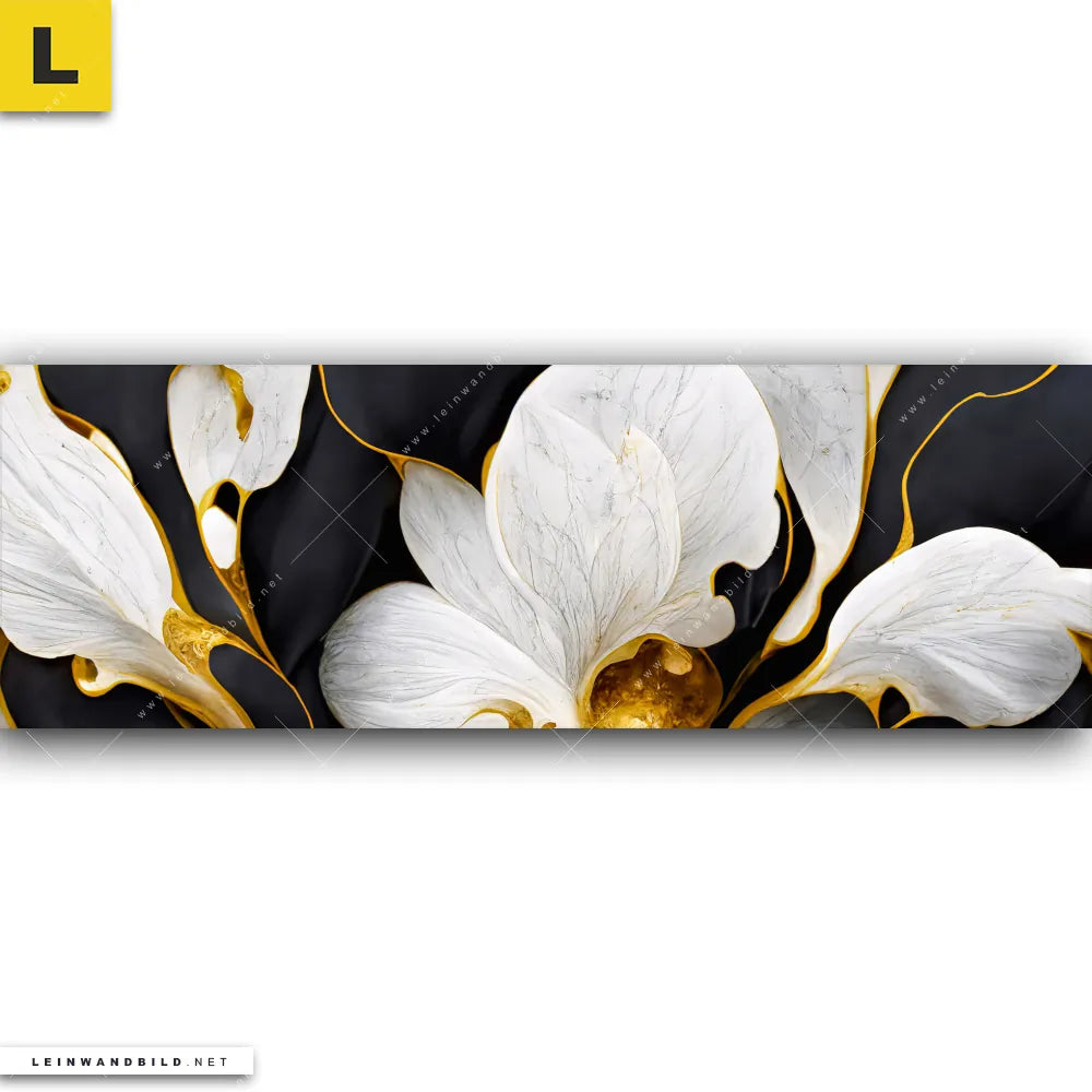 Du konfigurierst Dein individuelles Leinwandbild | Marmor Blüten in weiß & gold | Panorama und wir produzieren es NEU für Dich. Unsere Muster - Texturen, Blumen - Botanik Leinwände sind KEINE Lagerware. Du bist Dir unsicher, welches Motiv oder Format das richtige für dein individuelles Keilrahmenbild ist, dann helfen wir dir gerne weiter und beraten dich!