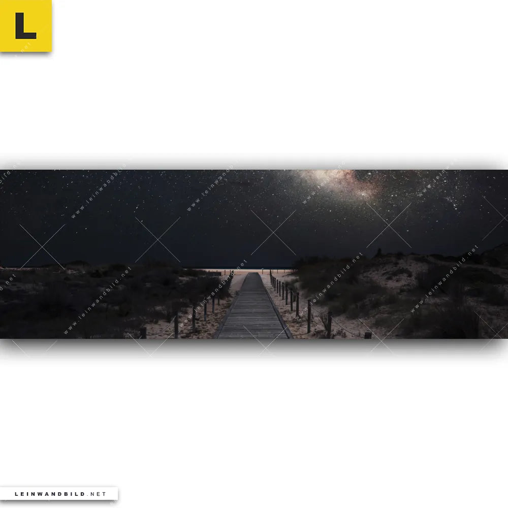 Du konfigurierst Dein individuelles Leinwandbild | Milchstraße über einem Holzweg | Panorama und wir produzieren es NEU für Dich. Unsere Landschaften, Strand - Meer Leinwände sind KEINE Lagerware. Du bist Dir unsicher, welches Motiv oder Format das richtige für dein individuelles Keilrahmenbild ist, dann helfen wir dir gerne weiter und beraten dich!