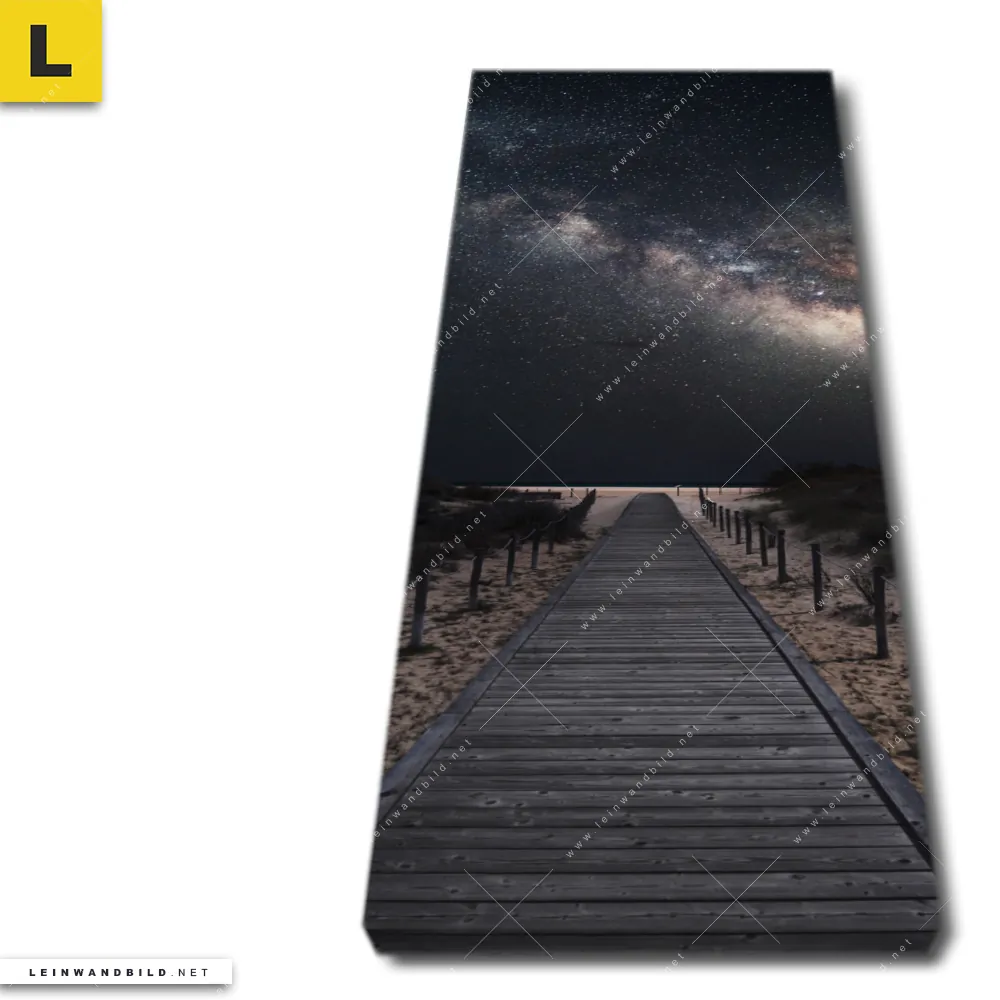 Du konfigurierst Dein individuelles Leinwandbild | Milchstraße über einem Holzweg | Schmal und wir produzieren es NEU für Dich. Unsere Landschaften, Strand - Meer Leinwände sind KEINE Lagerware. Du bist Dir unsicher, welches Motiv oder Format das richtige für dein individuelles Keilrahmenbild ist, dann helfen wir dir gerne weiter und beraten dich!