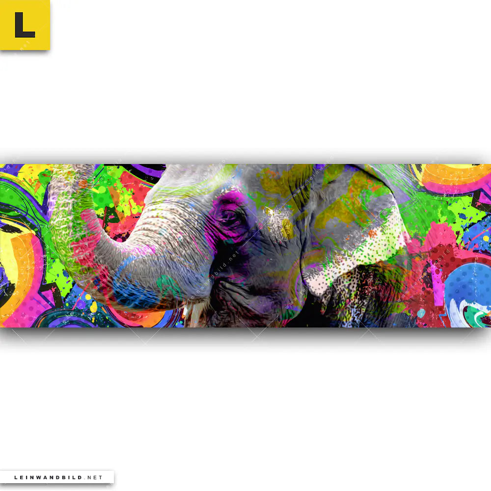 Du konfigurierst Dein individuelles Leinwandbild | Moderner bunter Elefant No. 2 | Panorama und wir produzieren es NEU für Dich. Unsere Tierwelt Leinwände sind KEINE Lagerware. Du bist Dir unsicher, welches Motiv oder Format das richtige für dein individuelles Keilrahmenbild ist, dann helfen wir dir gerne weiter und beraten dich!