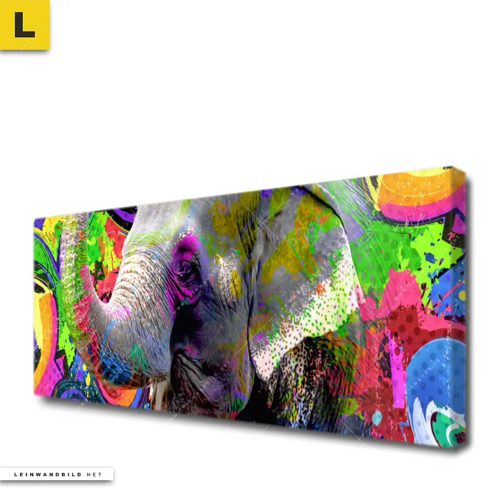 Du bist auf der Suche nach einem XXL Tierwelt Leinwandbild und Begriffe wie Elefant, Afrika, Big Five, Dickhäuter, Stoßzahn, Farbspritzer, Farbwolke, Dschungel haben Dich auf der Suche nach Deinem neuen Panorama Wandbild auf Leinwand inspiriert? Farben wie Bunt dürfen auf Deinem neuen extra breiten Keilrahmenbild nicht fehlen und Leinwände im Modern Art, Pop Art Stil passen perfekt zu Deinem Einrichtungsstil?