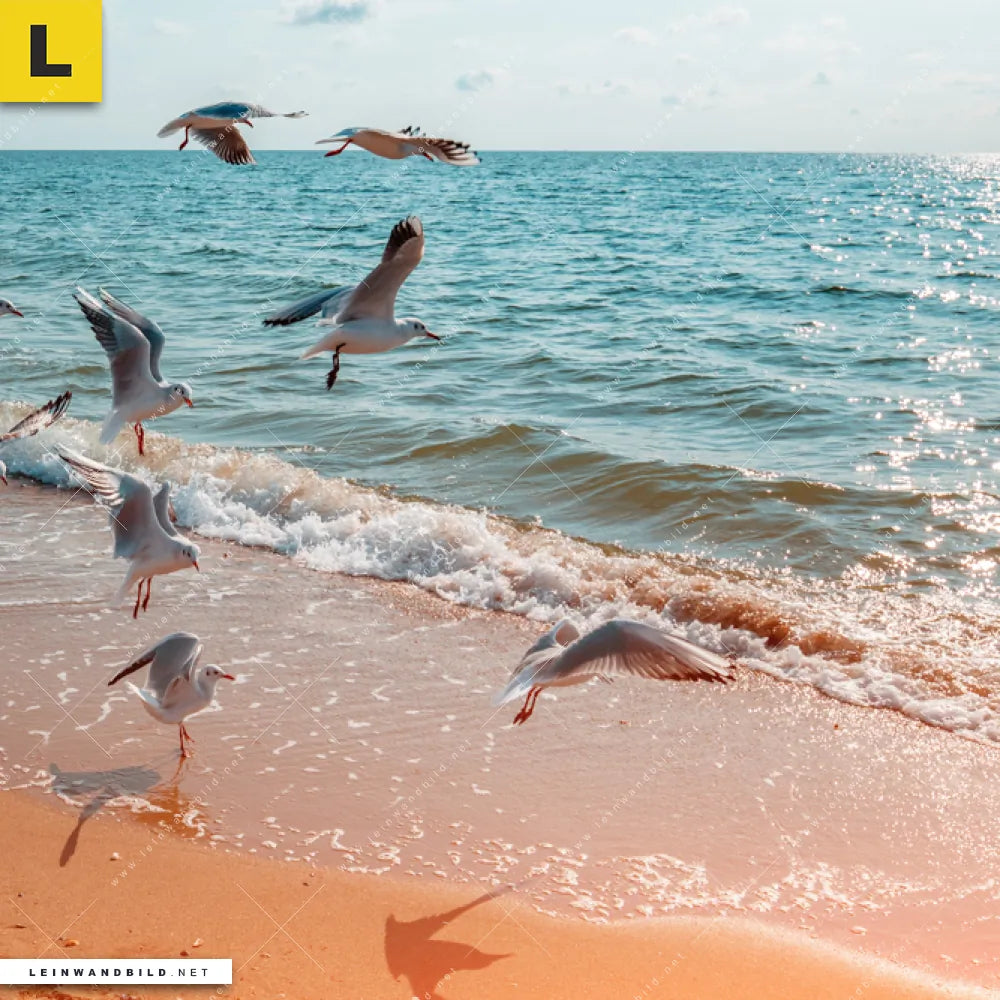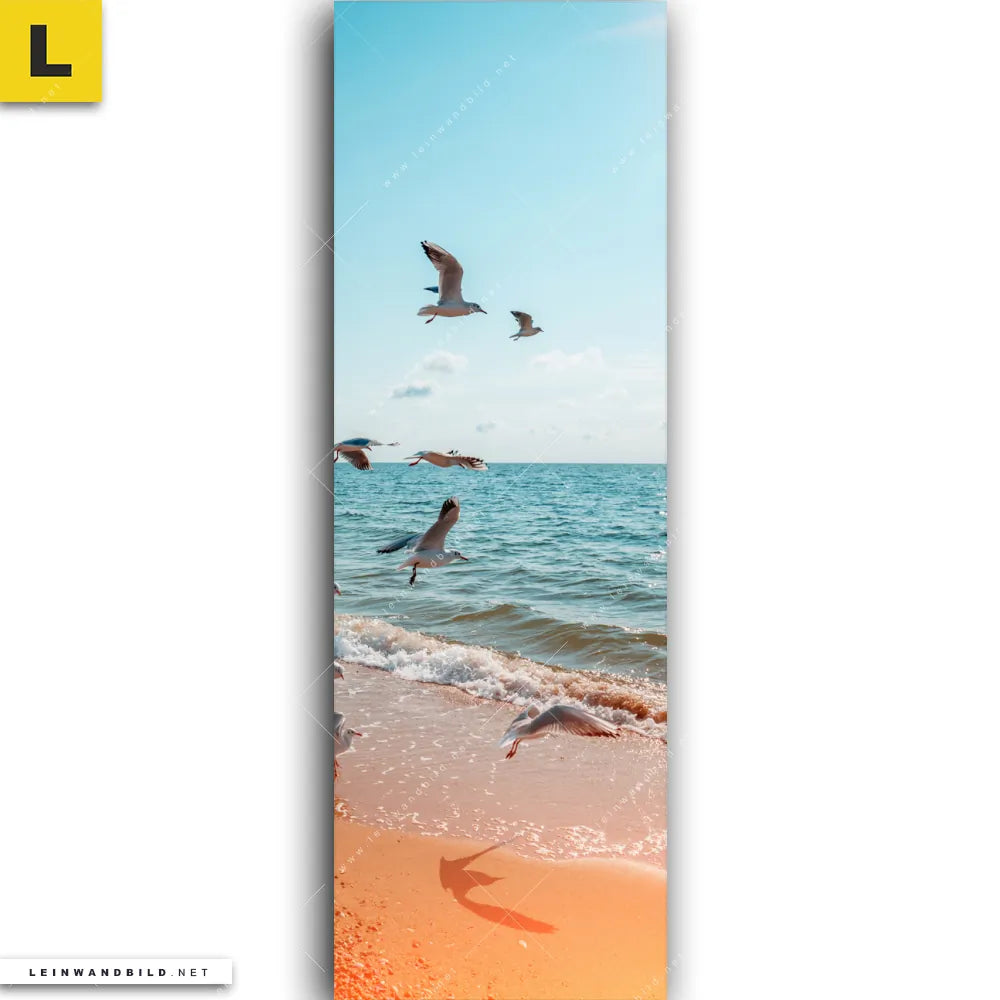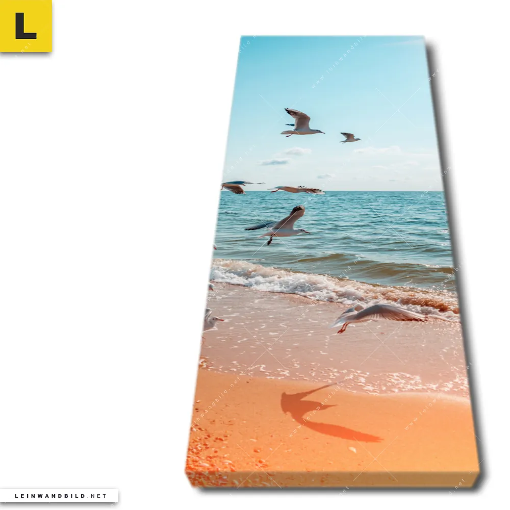 Du konfigurierst Dein individuelles Leinwandbild | Möwen am Strand | Schmal und wir produzieren es NEU für Dich. Unsere Landschaften, Strand - Meer Leinwände sind KEINE Lagerware. Du bist Dir unsicher, welches Motiv oder Format das richtige für dein individuelles Keilrahmenbild ist, dann helfen wir dir gerne weiter und beraten dich!