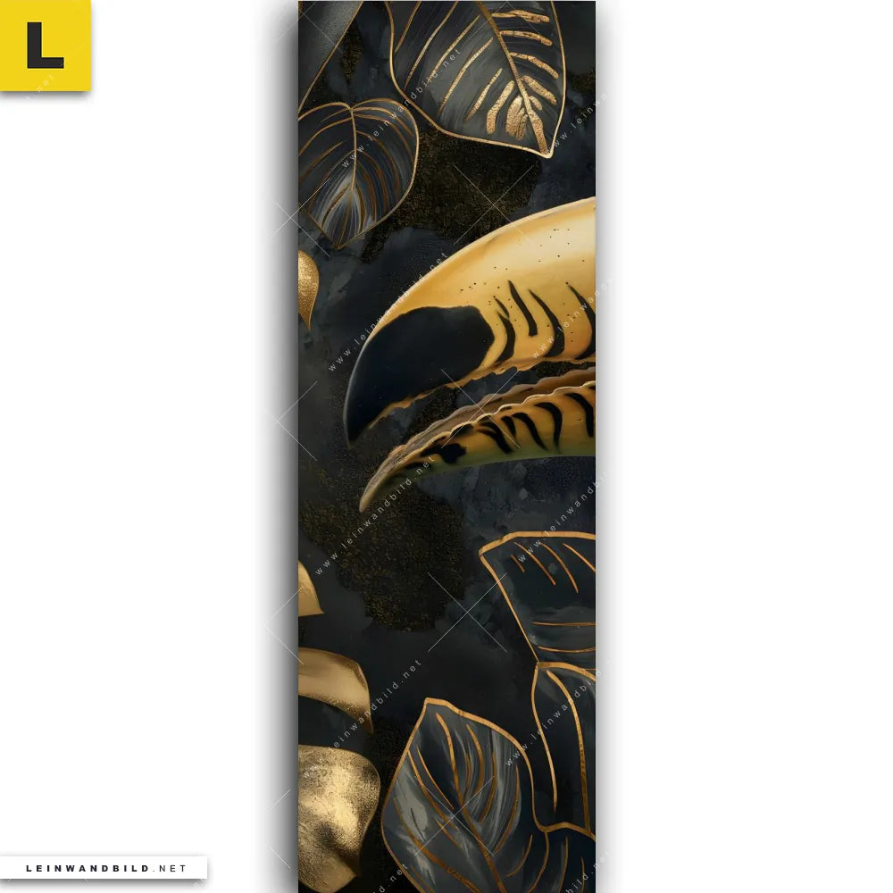 Du konfigurierst Dein individuelles Leinwandbild | Monstera und Tukan Gold | Schmal und wir produzieren es NEU für Dich. Unsere Tierwelt, Blumen - Botanik Leinwände sind KEINE Lagerware. Du bist Dir unsicher, welches Motiv oder Format das richtige für dein individuelles Keilrahmenbild ist, dann helfen wir dir gerne weiter und beraten dich!