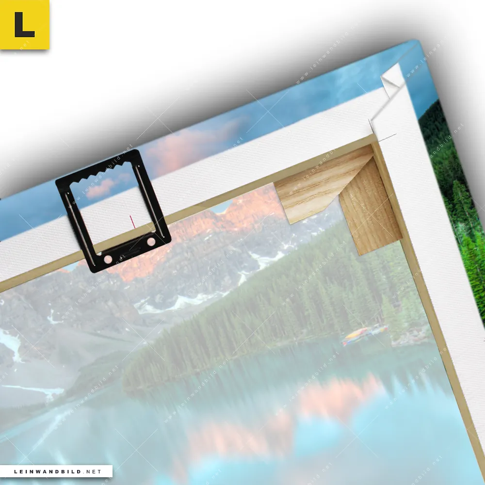 Du konfigurierst Dein individuelles Leinwandbild | Moränensee Sonnenaufgang | Querformat und wir produzieren es NEU für Dich. Unsere Landschaften Leinwände sind KEINE Lagerware. Du bist Dir unsicher, welches Motiv oder Format das richtige für dein individuelles Keilrahmenbild ist, dann helfen wir dir gerne weiter und beraten dich!