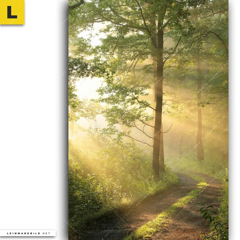 Leinwandbild | Morgenspaziergang im nebeligem Wald | Hochformat